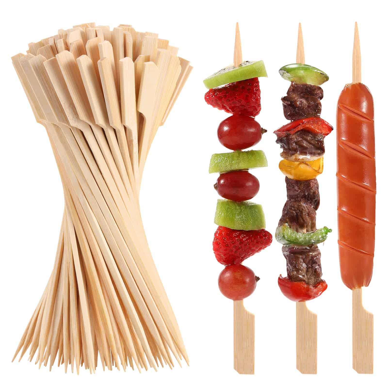 1. Eco-Friendly- Las brochetas para aperitivos están hechas de bambú natural, un material altamente renovable. No tóxico, seguro para alimentos, resistente y fuerte.