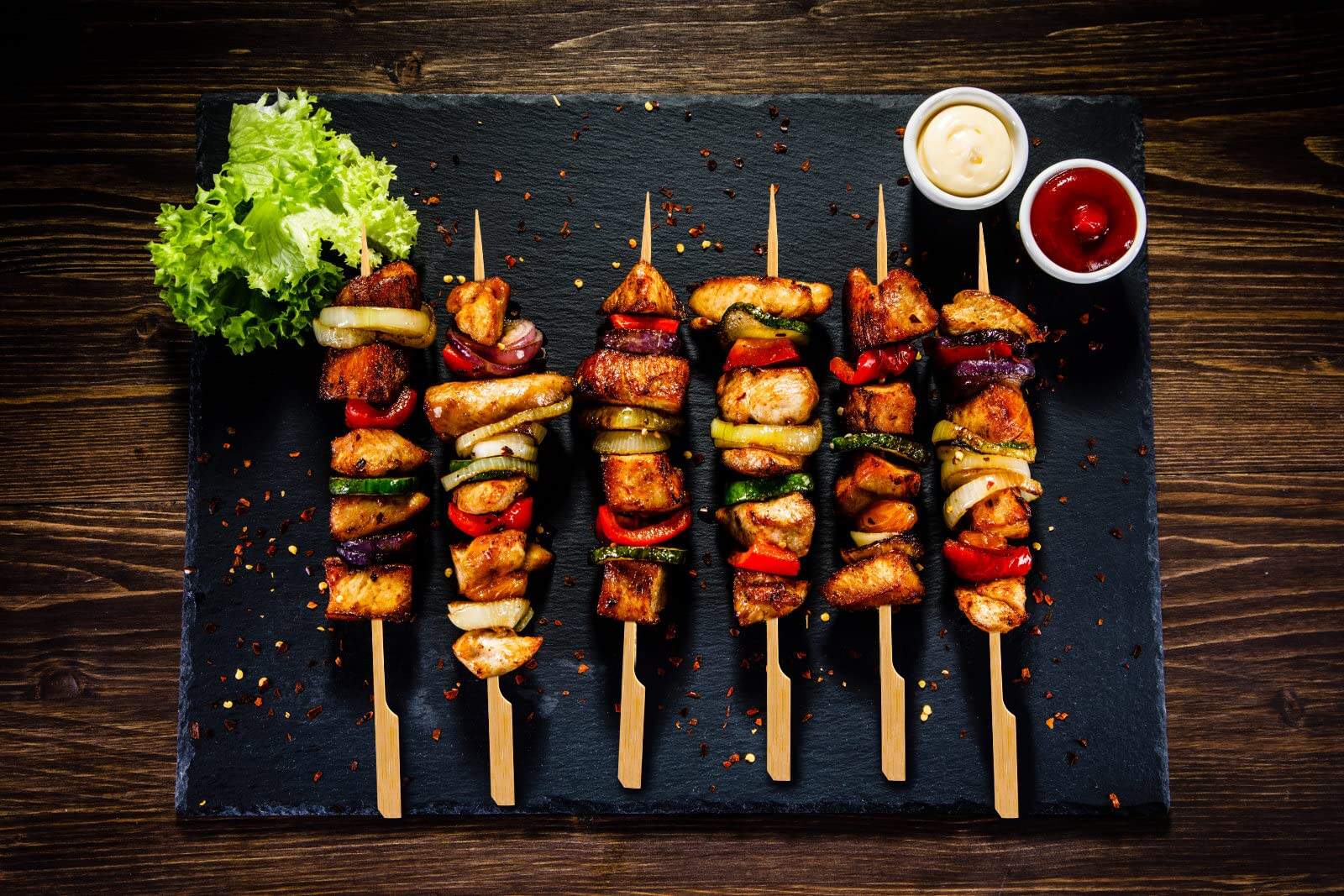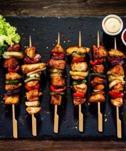4. Amplia Aplicación – Como herramienta de servicio, nuestras brochetas de bambú son perfectas para aperitivos, canapés, kebabs, parrillas, barbacoas, bocadillos, mini hamburguesas, fuente de chocolate o incluso frutas. También se pueden usar como palillos para cócteles. Es una herramienta imprescindible para caterings, fiestas, picnic y otras ocasiones.