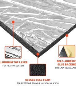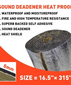 Aislante acústico para automóviles Material: aluminio + espuma de PE Espesor: 5mm Tamaño: 16.5 pulgadas x 315 pulgadas x 800cm Área total: 36.16 sqft Cantidad: 1 rollo. Paquete: 1 aislante térmico para automóviles. Características: impermeable de alta densidad y resistente a aceites, retardante de llama, adhesivo fuerte, duradero y fácil de instalar. Por qué usar aislante acústico: evita que el calor del motor se transfiera al capó, evitando el sobrecalentamiento y protegiendo la superficie de la pintura. Tiene un excelente rendimiento de aislamiento térmico, bloqueando eficazmente el 98% de la transferencia de calor, garantizando que su vehículo esté cálido en invierno y fresco en verano. Absorbe el ruido y vibraciones del motor para crear un ambiente de conducción cómodo. Instalación: retire el panel de la puerta. Limpie el lugar donde se instalará. Ajuste el material aislante firmemente al cuerpo del coche para obtener el mejor rendimiento de aislamiento acústico y amortiguamiento. No deseche los recortes sobrantes, puede pegarlos en lugares ocultos. Dónde instalar: puede usarse en lugares como techos, puertas, motores, chasis, asientos, maleteros, etc.