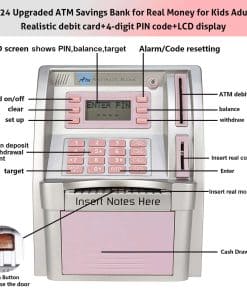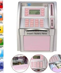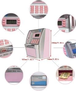 Esta Mi Hucha de Dinero / Monedas ATM Personal con Display Digital es la ayuda perfecta para que tus hijos comiencen a aprender sobre el ahorro. Haz que ahorrar dinero sea divertido para los niños con la Máquina de Monedas Digital ATM. Enseña a los niños la importancia de ahorrar con esta Caja de Dinero ficticia. La ranura para monedas reconoce la denominación de cada moneda, lo que ayuda a llevar un seguimiento de los saldos de las cuentas. También se pueden depositar billetes y se puede utilizar el teclado para actualizar la cantidad en la cuenta. Esta Caja también cuenta con funciones incorporadas como reloj, reloj de 24 horas, fecha, alarma, calculadora y sonidos y tonos de cajero automático para una experiencia realista. Los niños incluso pueden fijar objetivos de ahorro y verificar la pantalla para ver cuántos días o dinero aún se necesitan para alcanzar sus metas. ¡La alarma incorporada sonará si manos traviesas intentan robar los ahorros de tu Hucha de Monedas personal! Por lo general, el tiempo estimado de entrega es de aproximadamente 7-15 días hábiles.