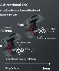 2024 Nuevo Juego de 12V Thruster Subacuático U92 con Ventilador de Refrigeración, RC y ESC, Motor sin Escobillas de 21.4Kg(47.2LBS) de Empuje, para Kayaks, Botes Inflables, Tablas de Remo. U92 está diseñado con un molde integrado, utilizando materiales compuestos de alta resistencia, con una superficie delicada y exquisita, los clientes pueden instalarlo y usarlo de manera flexible según su situación real. Equipado con ESC bidireccional a prueba de salpicaduras de 100A, con múltiples protecciones: protección de baja tensión, protección de alta tensión, protección de temperatura excesiva, protección de corriente excesiva, etc. El ESC y el receptor remoto están integrados en el estuche de metal del ventilador de refrigeración, fácil de usar y mantener. Se recomienda utilizar la set de thruster subacuático U92 de 12V con 12V (3S LiPo), salida directa positiva y negativa, conector en O-ring, conexión rápida de la batería. Equipado con un anillo en O de 10 mm de diámetro para cumplir con el 99% de los terminales de batería marina. El control remoto ha completado todos los ajustes, no necesita realizar ninguna operación de configuración, solo conecte la alimentación para empezar a funcionar. Las funciones de otros canales del control remoto están principalmente reservadas para entusiastas del bricolaje para agregar otros equipos, y este control remoto no es resistente al agua. Lista de paquetes: Thruster CW 1, Thruster CCW 1, ESC 2 (integrados dentro de la caja del ventilador de refrigeración), RC no resistente al agua 1, Receptor 1, Estuche de metal del ventilador de refrigeración 1, Base de montaje 2, Conector de montaje 2, Tornillos 1 paquete. No incluye batería, debe comprarse por separado.