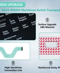 2024 Upgrade DG34-00020A Membrana táctil Panel táctil compatible con Samsung Horno Estufa SE Error Report 32 Botón Superposición Panel táctil Fortalecer la línea de conexión Material duradero 2 años de garantía. El panel táctil utilizado para reemplazar el horno estufa Samsung es adecuado para reportar errores «SE», falla del panel táctil, daño del panel táctil, desprendimiento del panel táctil, envejecimiento del panel táctil, etc. La superficie de la Membrana táctil Panel táctil DG34-00020A de actualización 2024 está hecha de material ABS de alta calidad, resistente a alta temperatura, aceite y corrosión, perfecto para el entorno de trabajo de alta temperatura del horno estufa Samsung, y tiene un mejor brillo y tacto. ¡Puede ser utilizado por más tiempo que la versión antigua! Número de parte de repuesto para horno estufa Samsung DG34-00020A AP5623392 PS4240764 3379170 EAP4240764 PD00023927. Los números de dispositivos o modelos disponibles se pueden encontrar en la página de detalles a continuación, incluidos NE594, NE595, NE59J, NX58, etc. ¡Asegúrese de que la energía esté apagada! Use guantes protectores. El video de instalación se puede buscar como «DG34-00020A» en YouTube, el proceso de instalación toma alrededor de 15 minutos. Cada Membrana táctil Panel táctil DG34-00020A pasa por una inspección de calidad del 100%, le proporcionamos 2 años de garantía de calidad, y a través del envío rápido a sus manos, si el producto en sí tiene un problema, contáctenos, ¡reemplazaremos incondicionalmente el producto por usted!