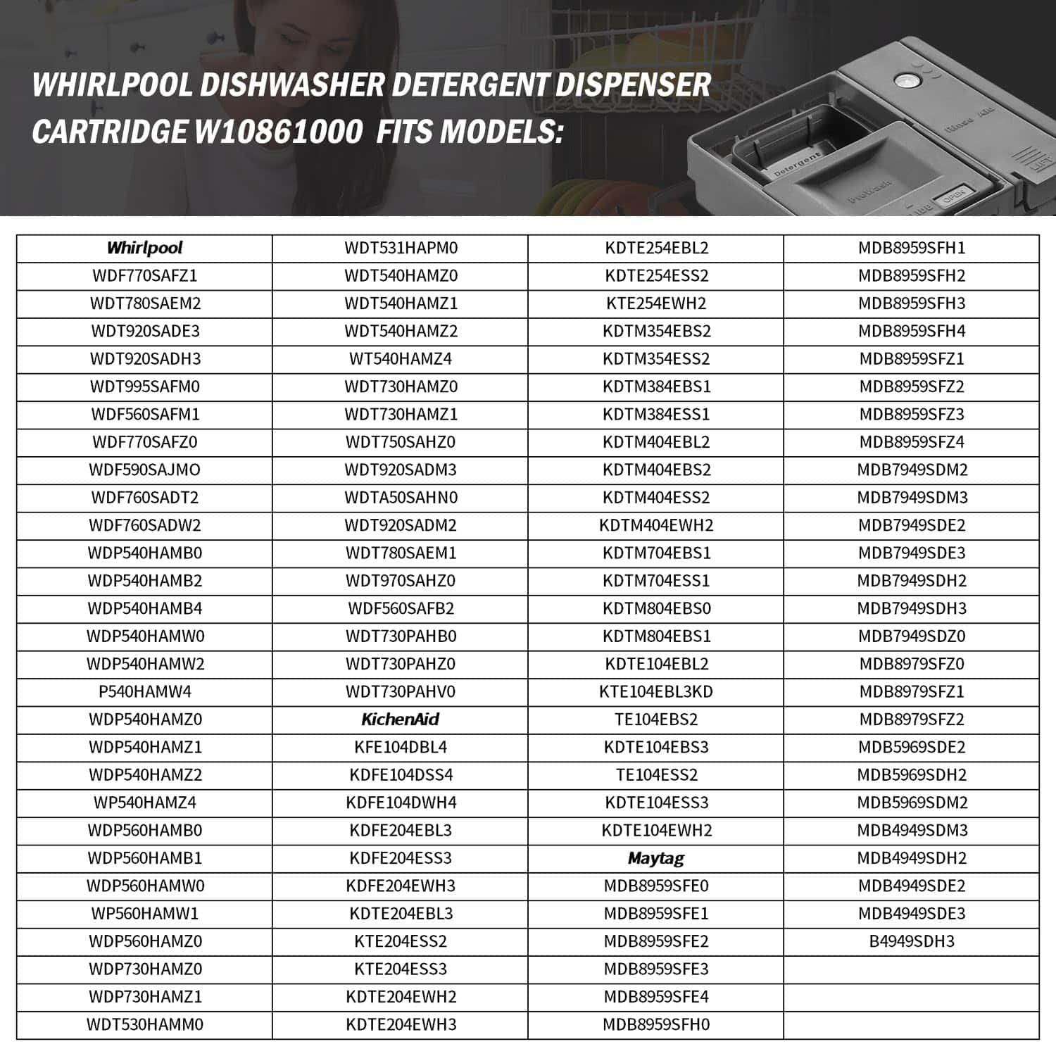 2025 Dispensador de Detergente para Lavavajillas NUEVO W10861000 W10620298 – Ajuste Directo para Whirlpool WDT970SAHZ0, KitchenAid KDTE254ESS2, MDB5969SDE2, Amana ADB1700ADB2 Reemplaza a AP5999391, PS11731570