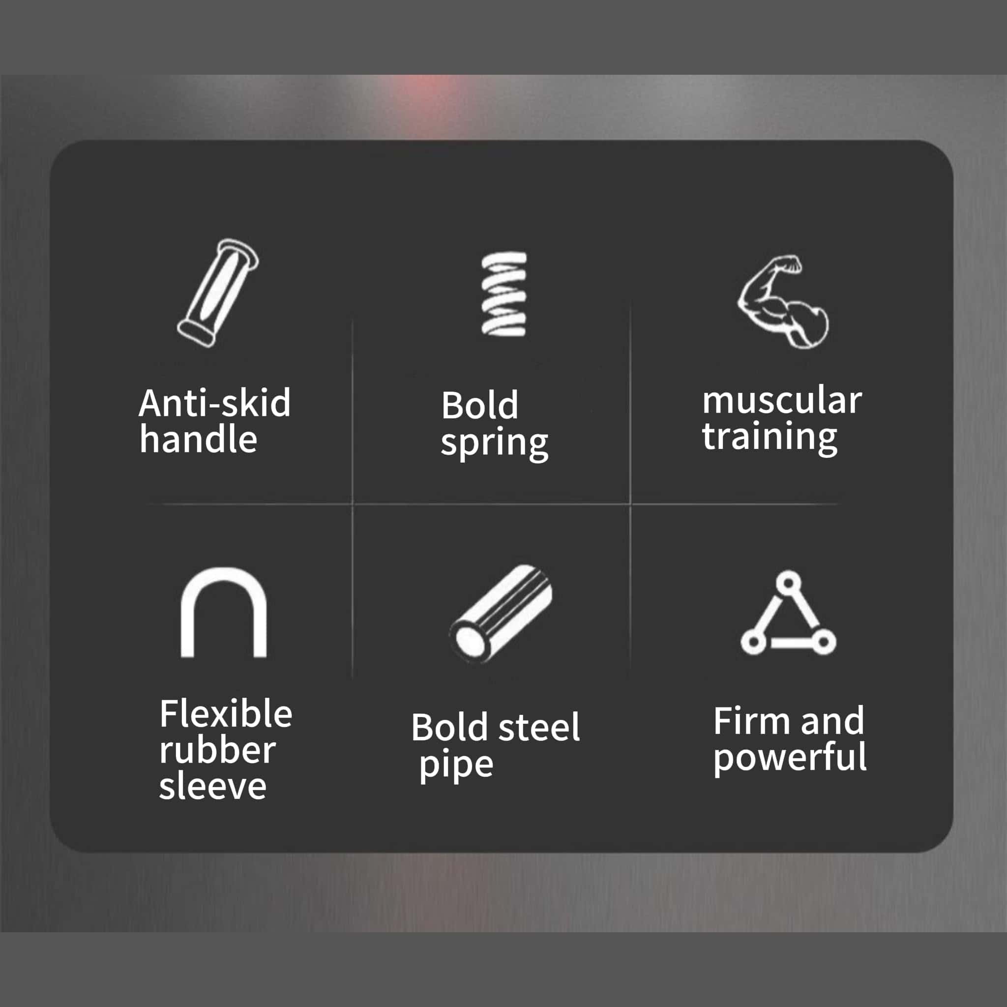 Enfoca los músculos del cuerpo superior (bíceps, tríceps, hombros, pecho) y las zonas del cuerpo inferior (núcleo, muslos) con un sistema de resorte en forma de U perfecto para tonificar, construir fuerza o terapia de rehabilitación. Reemplaza el equipo de gimnasio voluminoso mientras logra un crecimiento muscular equilibrado y flexibilidad mejorada.