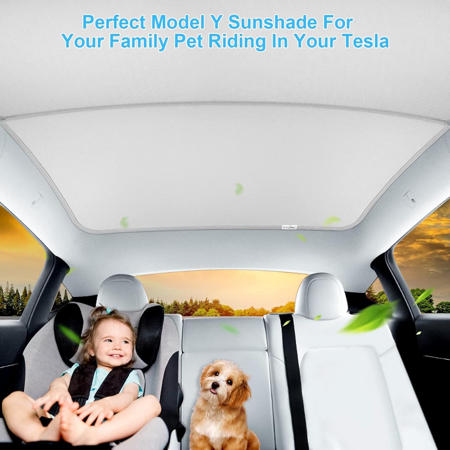 2025 Techo parasol mejorado para Tesla Model Y 2025-2020 Nunca se hunde Aislamiento térmico de vidrio Parasol para el techo solar Tesla Model Y Accesorios, Visera de techo solar Cortina de sombra UV Reflectante de cubiertas blancas