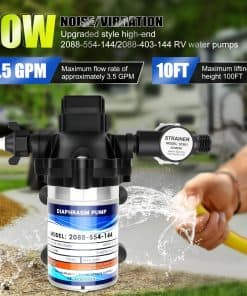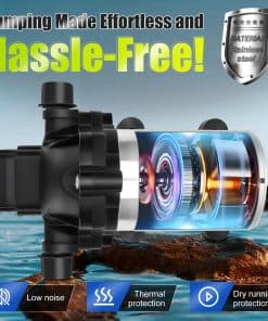 La bomba de agua de diafragma industrial cuenta con un diseño de autoaspiración con una impresionante capacidad de elevación vertical de hasta 10 pies. Opera a una presión máxima de 45 PSI, liberando un rendimiento de bombeo poderoso para sus aplicaciones líquidas. Sea cual sea el líquido, esta bomba lo maneja con facilidad, entregando una impresionante tasa de flujo de 3.5 GPM.