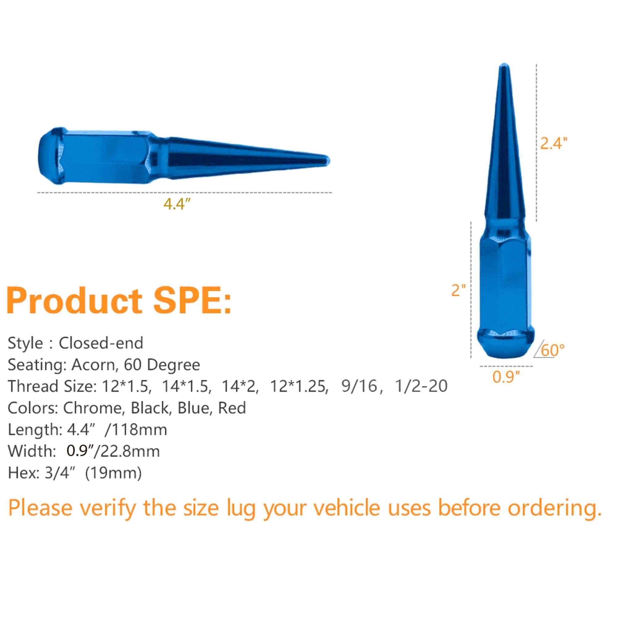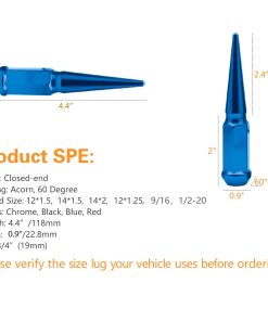 20pc Tuerca de Púa 9/16-18 Azul 4.4″ Alto Offroad Tuercas