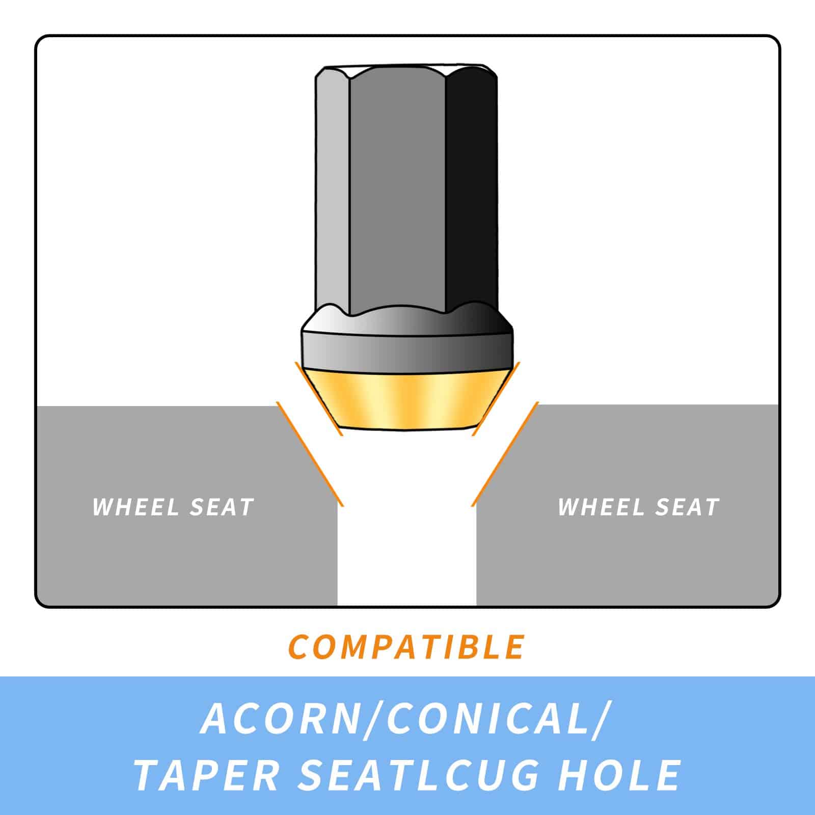 2. Apto para: Solo para ruedas con pernos M12 x 1.5 y asiento cónico de 60 grados, Compatible con Ford, Buick, Toyota, Mitsubishi, Mazda, Honda, Chevrolet, Hyundai, KIA, etc.