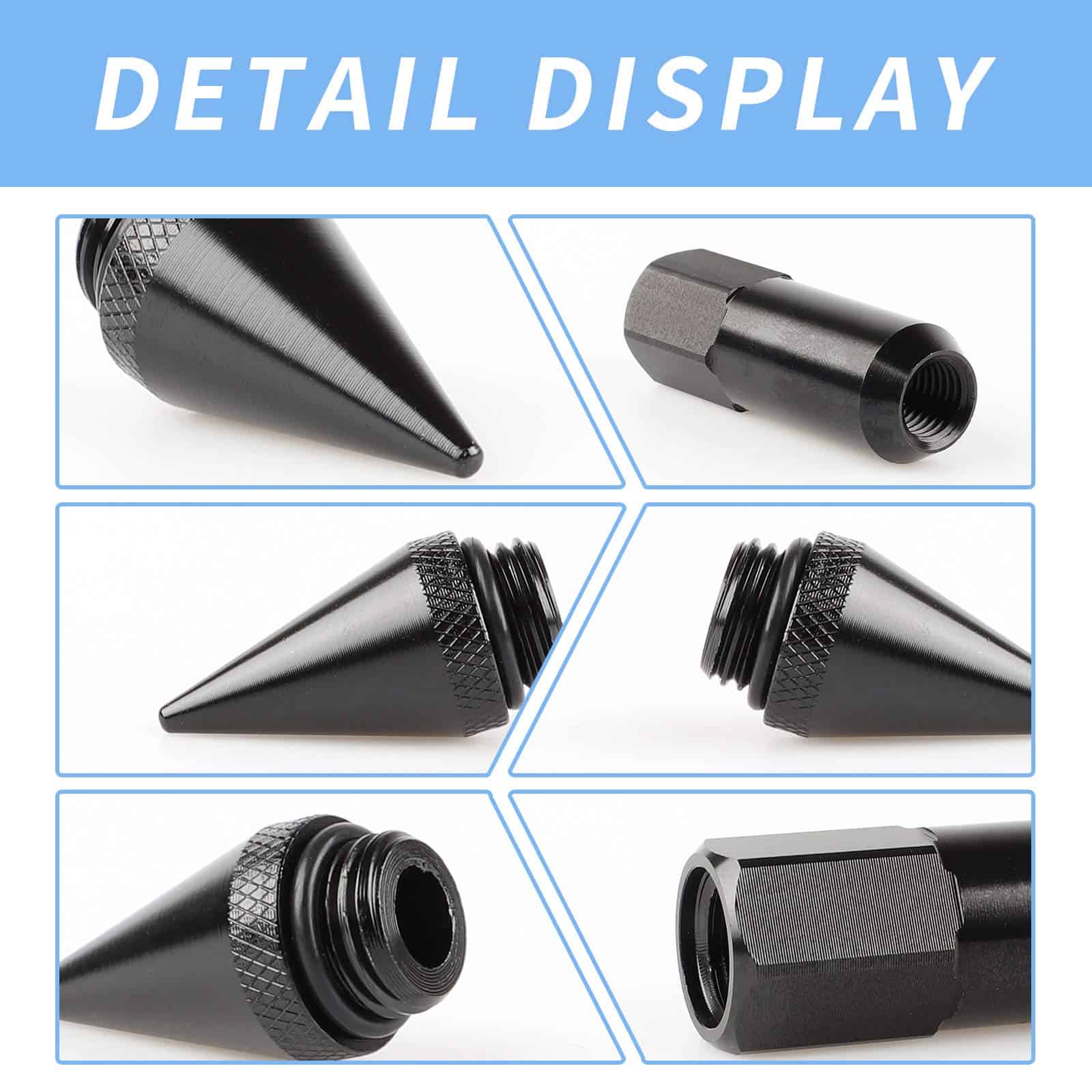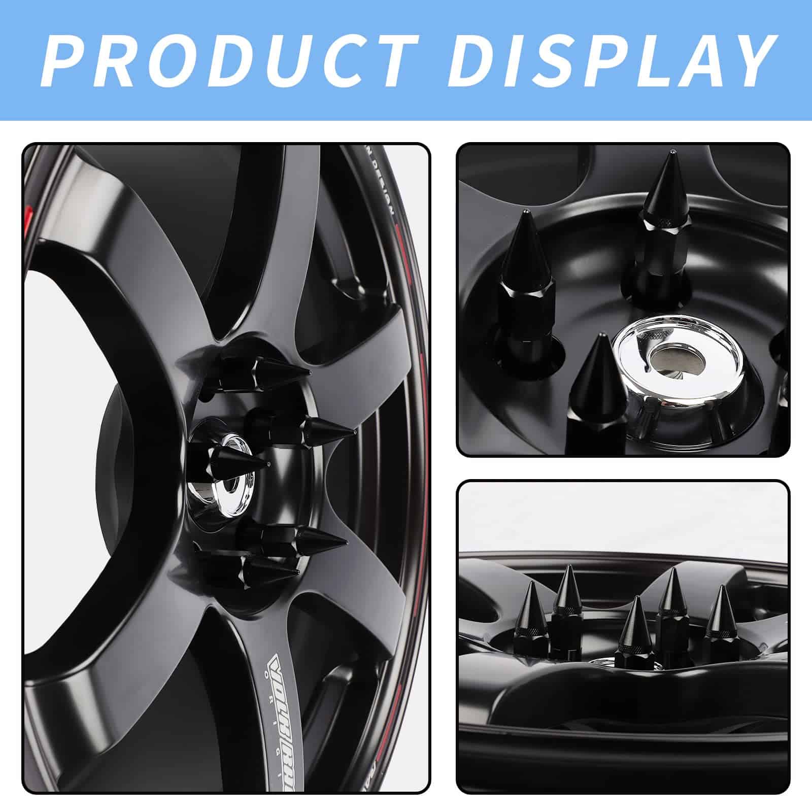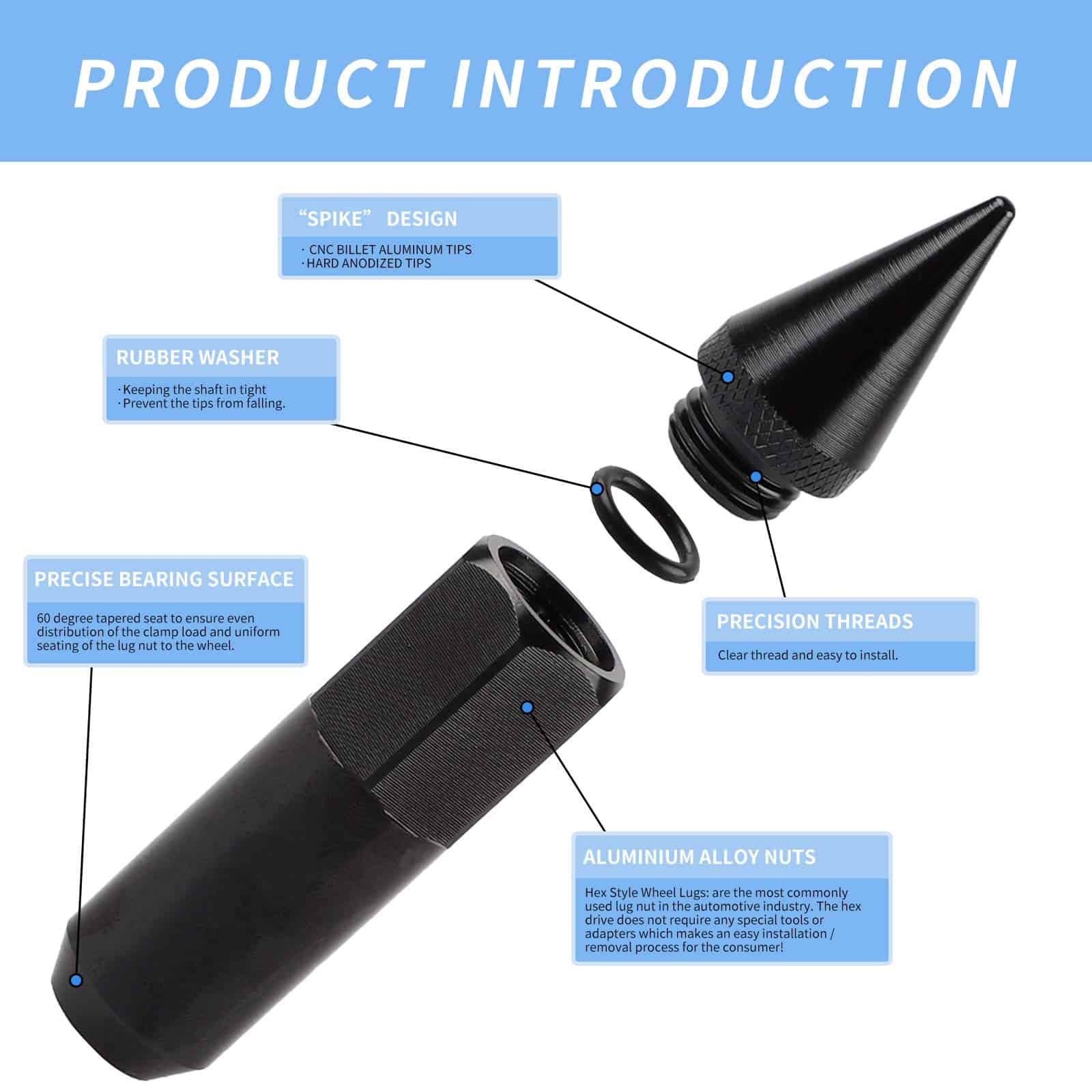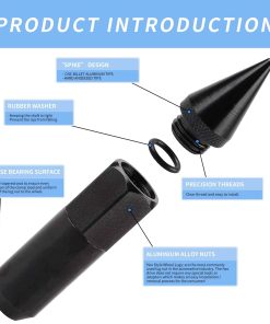 4. Duradero y seguro: La parte de las tuercas está hecha de acero forjado y tratado térmicamente, estas tuercas de puntas son más duraderas en comparación con las tuercas de aluminio. La construcción de dos piezas es más conveniente que el diseño de una sola pieza, puedes elegir fácilmente si poner las puntas o no.