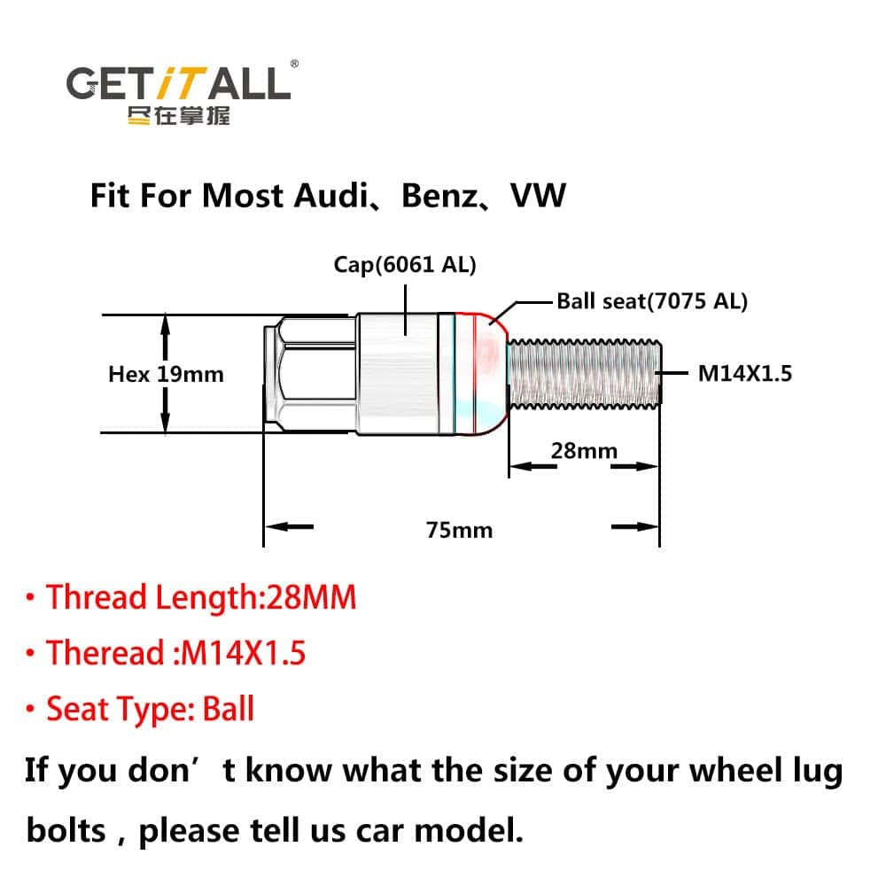 20PCS Pernos de llanta M14x1.5 con longitud de vástago de