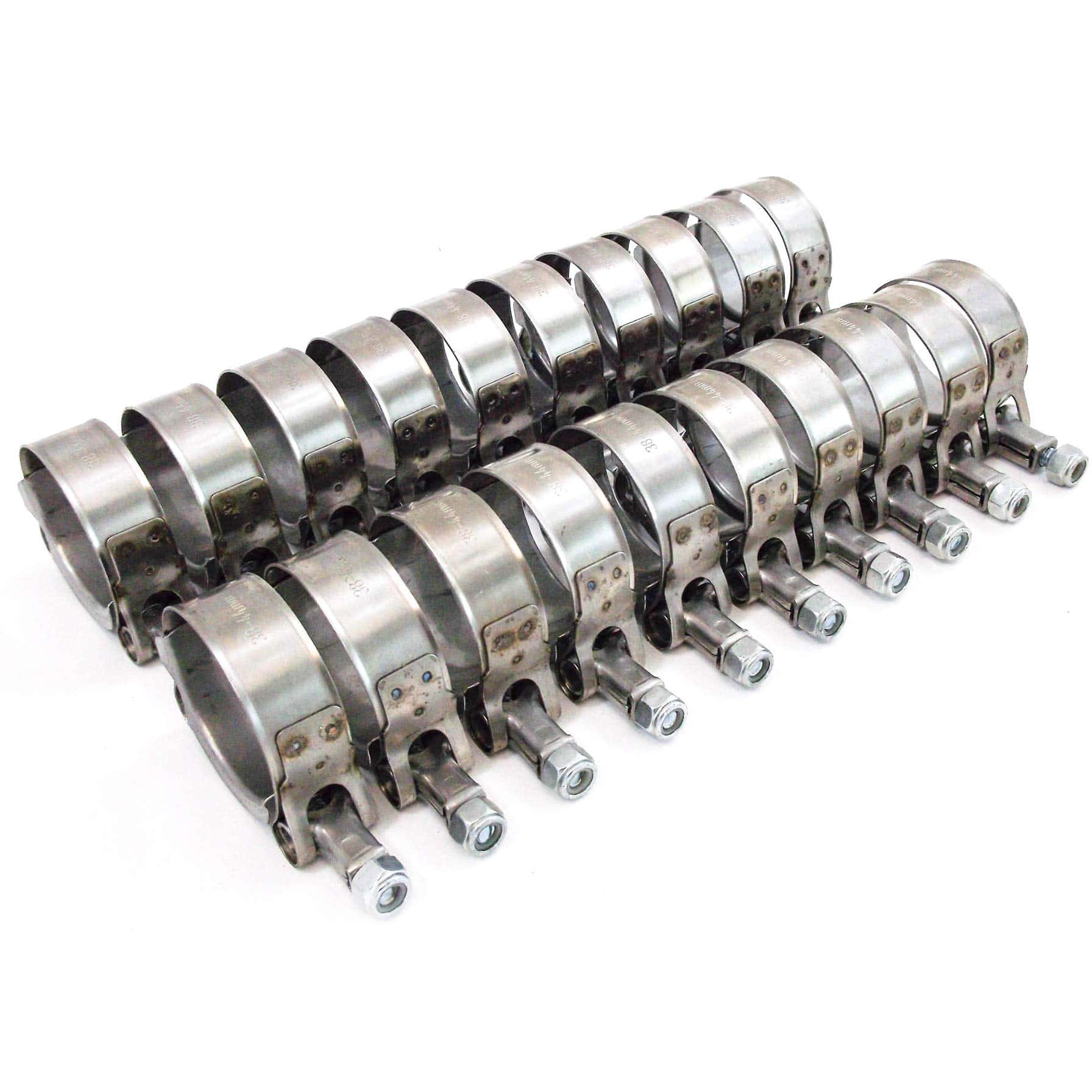 Juego completo incluye VEINTE abrazaderas de manguera T-bolt de acero inoxidable premium nuevas, nunca usadas (incluyendo pernos y tuercas de acero galvanizado)