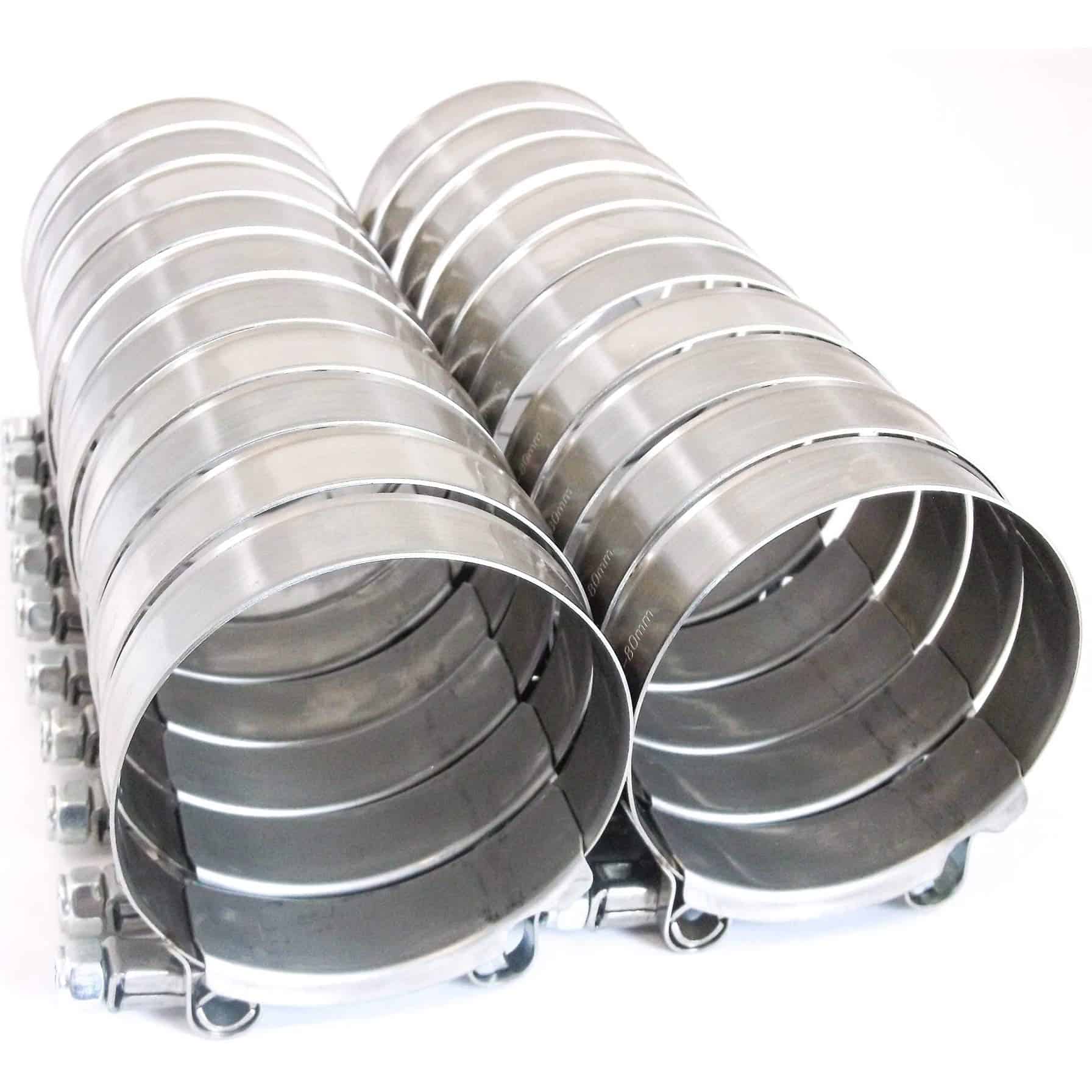 20x Abrazadera de Manguera de Silicona Turbo T-Bolt de Acero Inoxidable Premium 304 de 2.83″-3.15″. Abrazaderas de Manguera T-Bolt de Acero Inoxidable Premium 304 resistentes y duraderas. Estas abrazaderas de manguera T-Bolt premium y resistentes han sido diseñadas para resistir y están fabricadas con los mejores materiales de calidad. Utilizamos acero inoxidable de la más alta calidad que es súper resistente y resistente a la corrosión. Las abrazaderas son ideales para muchas aplicaciones (tanto industriales como domésticas) como comerciales, automotrices, sistemas de admisión de aire, sistemas de conductos y sistemas de refrigeración. El producto está respaldado por una garantía de un año sin complicaciones contra defectos. El conjunto incluye: Conjunto completo que incluye VEINTE abrazaderas de manguera T-bolt de acero inoxidable premium nuevas y sin usar (incluye hardware de perno y tuerca de acero galvanizado). Diámetro de la abrazadera (diámetro interno): 72 mm – 80 mm (2.83″-3.15″). Ancho de la banda: 19 mm (3/4″). Grosor: grosor del material de 0.8 mm. Acero inoxidable premium 304 resistente a la corrosión y al clima (comparar con otros que venden acero de grado 201 o 301 más barato). Resistente y duradero, listo para soportar entornos duros y aplicaciones pesadas. Garantía de un año contra defectos de fabricación.