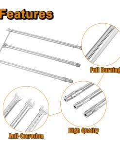 Las barras flavorizer Weber Genesis Silver b están hechas de acero inoxidable mejorado, lo que las hace más duraderas, resistentes al óxido y la corrosión, resistentes al astillado, agrietamiento y deformación, distribución uniforme del calor y duraderas, resisten el calor generado durante la parrilla. Dimensiones 22 1/2 x 2 1/4 por barra flavorizer Weber Genesis Silver b, 28 1/8 por tubo de quemador lateral de Genesis, 27 3/8 por tubo de quemador central de Genesis, 12 3/4 por tubo de cruce de Genesis, en total 5 barras flavorizer Weber y 4 tubos de quemador Weber para las piezas de repuesto de la parrilla Weber (Asegúrese de que el tamaño y el paquete sean perfectos para las piezas de repuesto de la parrilla Weber Genesis). Reemplazo para las piezas de la parrilla de gas de Weber Número Weber 7537, 7536, 65903, 3611, 7508, 10460, 164667, 8166035 y más. Apto para las piezas de la parrilla Weber Genesis (2022Y-Actual) Weber Genesis Silver B/C, Gold B/C, Platinum B/C y más, piezas de la parrilla Weber Genesis Silver B, piezas de la parrilla Weber Genesis Silver B, barras flavorizer Weber Genesis Silver B, piezas de repuesto para la parrilla Weber Genesis Silver B/C, piezas de la parrilla Weber Spirit (2007Y – 2012Y) Weber Spirit Series 300 con control lateral, Spirit E-310, E310, E-320, E320 y más, Weber 900 y Spirit 700 y más, piezas de la parrilla de gas Spirit e310 Weber, piezas del spirit e-310 Weber, piezas del spirit e310 Weber, piezas de la parrilla de gas spirit e-310.