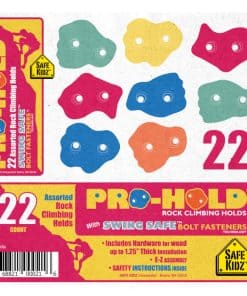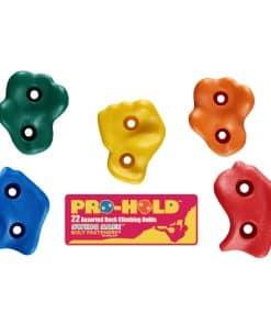 ¿Por qué sudar y esforzarse al instalar juguetes de escalada para sus hijos? Simplifique el proceso con nuestro Set de Escalada de Rocas Pro-Hold. A diferencia de otros sets, nuestro kit Pro-Hold incluye todo el hardware premium que necesitará para una instalación rápida. Ya sea que esté montando las rocas de escalada en un juego existente o usándolas para construir su propia pared de escalada, terminará el trabajo en poco tiempo. Además, las rocas de escalada Pro-Hold vienen en formas realistas variadas y colores brillantes que encantarán a los niños y están construidas con plástico moldeado resistente a fin de soportar mucho desgaste. ¡Ordene su kit Pro-Hold ahora y obtenga los mejores asaderos para niños que son más fáciles de instalar!
