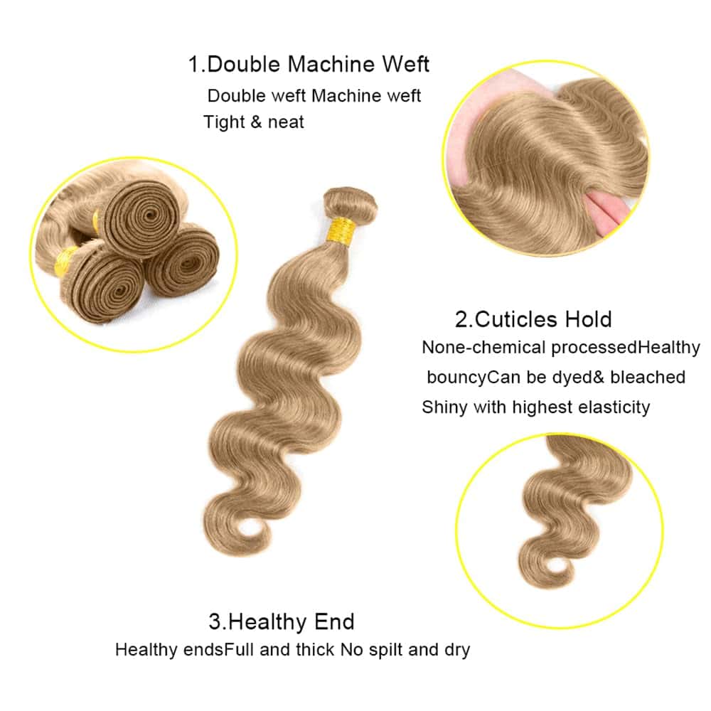 3. Color de las Extensiones de Cabello Humano: 22 Rubia Ceniza Mechones de Cabello Onda del Cuerpo Humano.