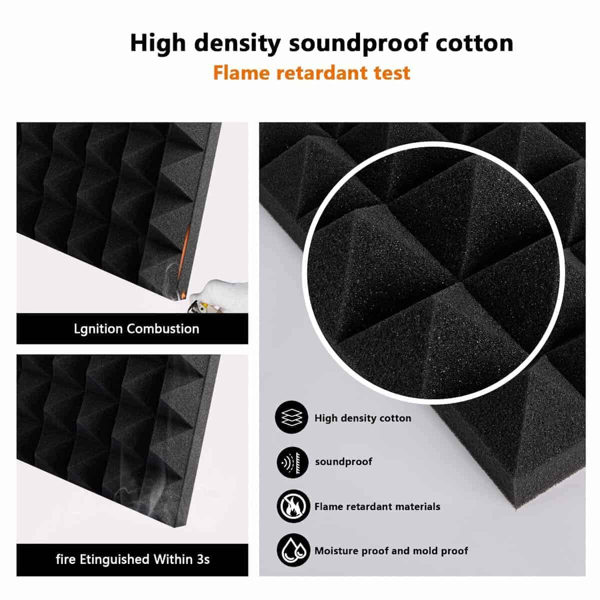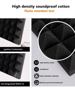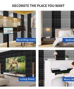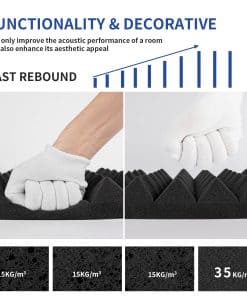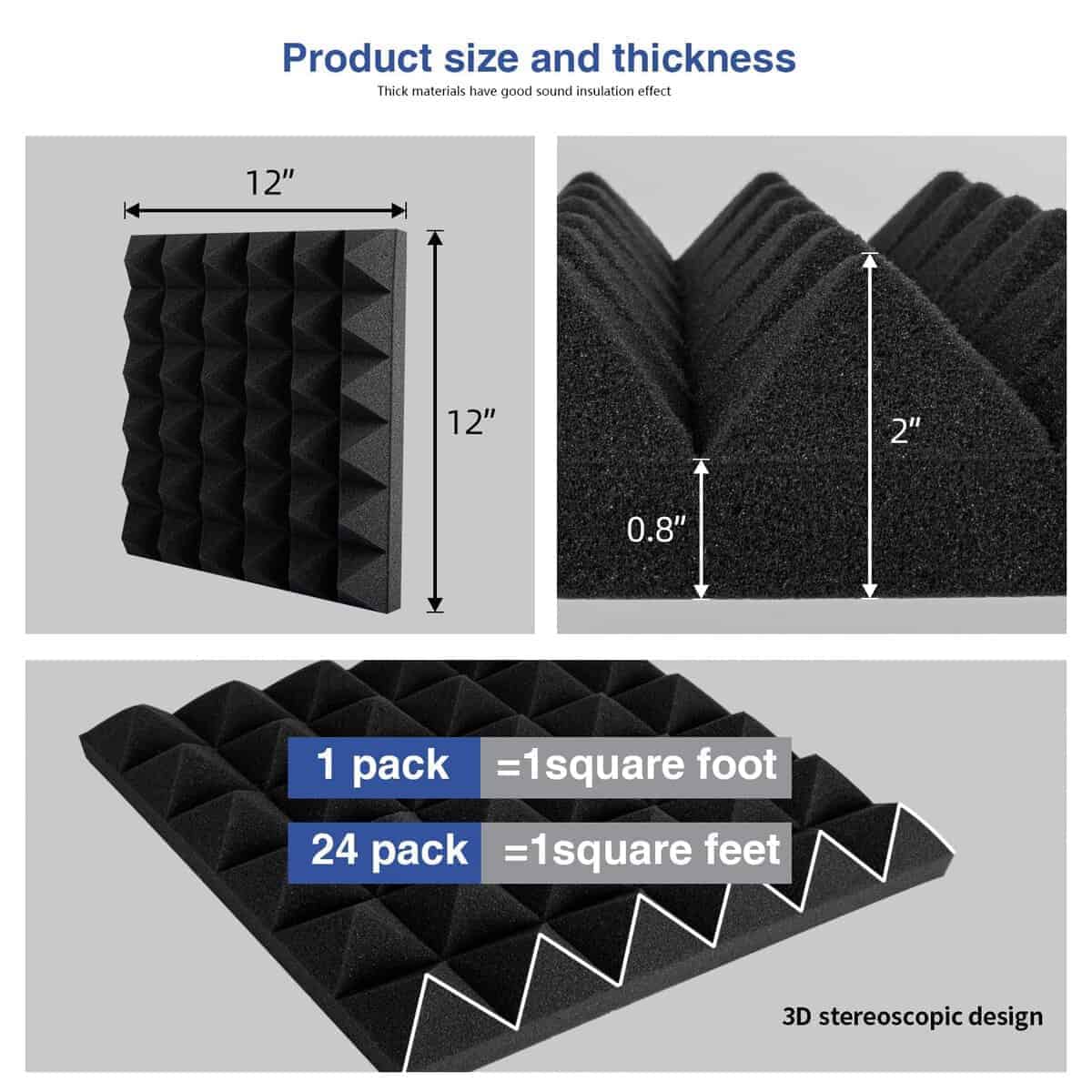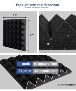 24 Pack de Paneles Acústicos Piramidales de 12″ X 12″ X 2″ con Autoadhesivo. Tecnología de Expansión Rápida, Rendimiento Acústico Superior, Instalación Sencilla, Construcción de Alta Densidad, Diseño Versátil para Funcionalidad y Estilo.