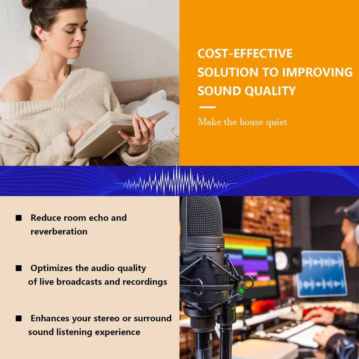 4. Rendimiento de Alta Densidad: Elaborados con materiales de alta densidad, estos paneles de espuma de estudio garantizan una absorción de sonido superior. Experimenta una reducción en el ruido no deseado y los ecos, mejorando la claridad de tus grabaciones y convirtiendo tu estudio en casa en un espacio ideal para la creatividad e inspiración.