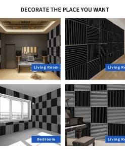 2. Mejora Acústica de Calidad de Estudio: Eleva tu estudio en casa a estándares profesionales con nuestros Paneles de Espuma Acústica. Con medidas de 12″ x 12″ x 2″, estas cuñas de espuma de estudio están diseñadas para optimizar la calidad del sonido, proporcionando un entorno controlado y equilibrado acústicamente para tus actividades creativas.