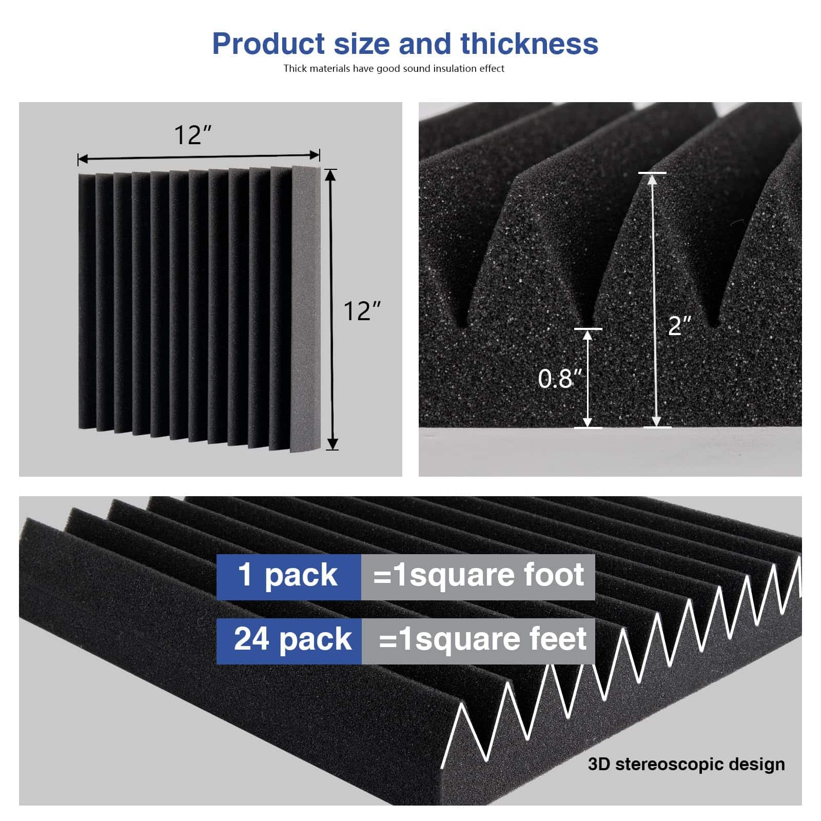 24 Pack Paneles de Espuma Acústica 12″ X 12″ X 2″ Cuñas de