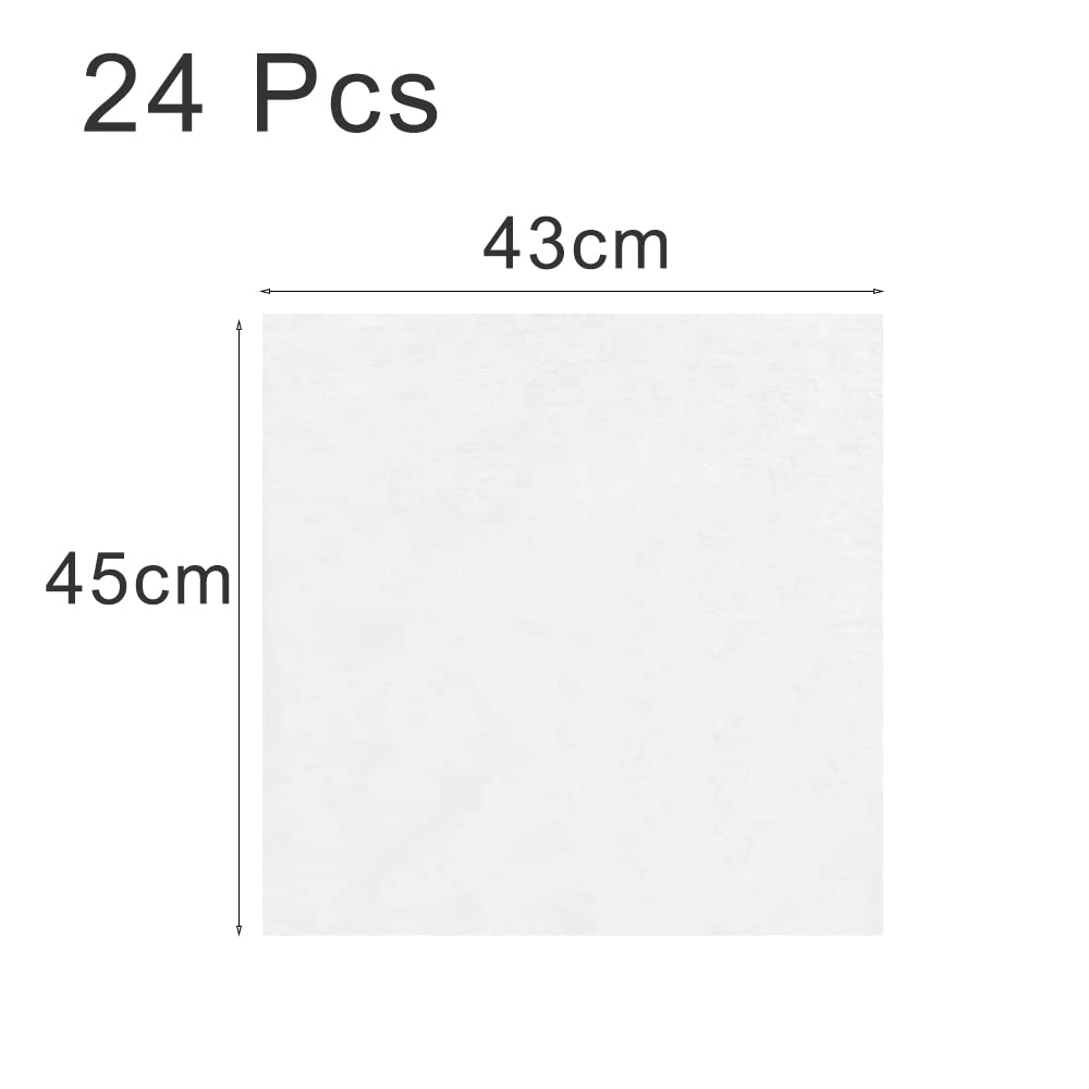 24 Pcs Filtros de Grasa para Campana Extractora Papel de Filtro para Campana de Cocina Accesorios de Cocina para Filtrar Grasa y Olores. Este juego incluye 24 piezas de papel de filtro para campana extractora, suficiente para cubrir tus necesidades y proteger tus paredes y muebles de cocina de los residuos de grasa. El tamaño de este papel de filtro para campana extractora es de 43x45cm, hecho de un material no tejido de alta calidad con fuerte retardante de llama, alta resistencia al calor, carga de aceite grande y ventilación suave. Fácil de instalar, solo limpia la campana, pega la pegatina en la posición adecuada y luego coloca el filtro en el velcro. Este papel de filtro para campana extractora puede absorber el vapor de grasa generado durante la cocción, evitar que la grasa entre en el sistema de ventilación de la campana, proteger tus paredes y muebles de los residuos de grasa de cocina y reducir tu trabajo de limpieza.