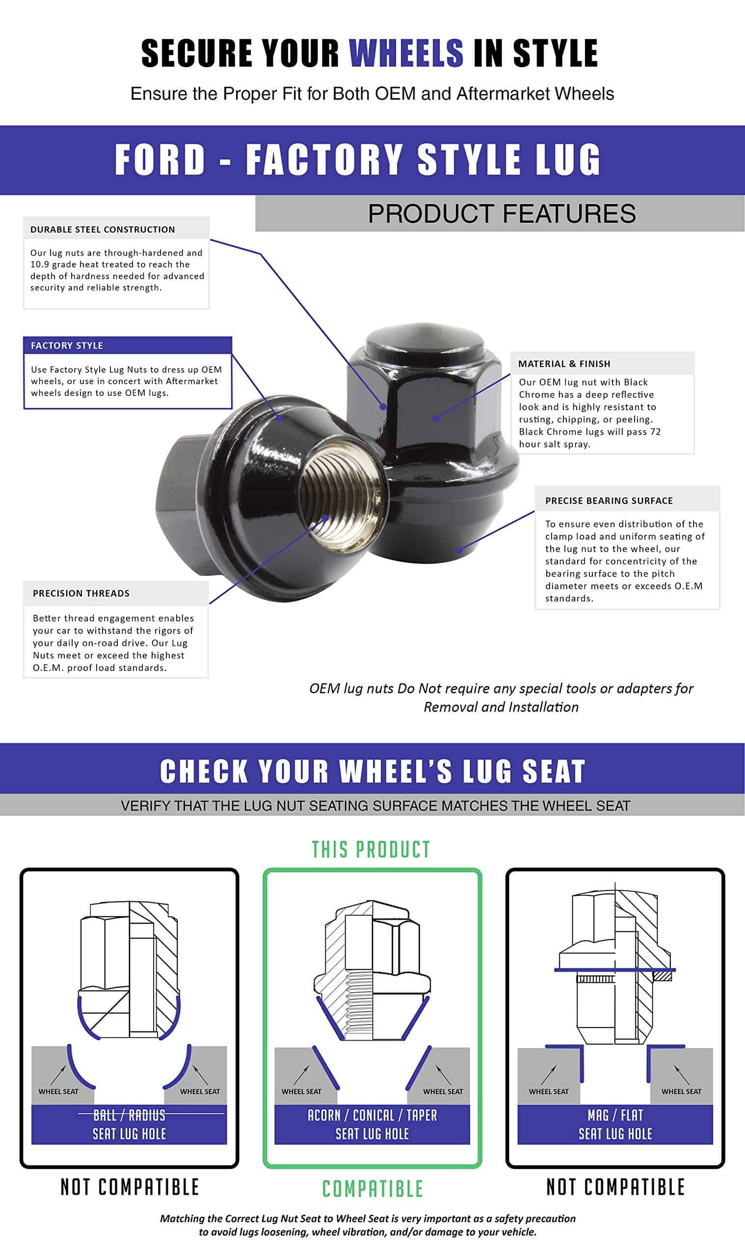 Siempre valide la adaptabilidad del producto a su vehículo. Este artículo es compatible con Ford Bronco (NO Raptor) Ranger (NO Raptor). Diseñado en EE. UU. – El diseño sólido de una sola pieza reemplaza el diseño original de dos piezas para una mayor confiabilidad. A diferencia de las tuercas de acero con tapa, nuestro diseño de una sola pieza no se hincha ni se desprende después de estar expuesto a la humedad. Brindándole tranquilidad. Cumple o excede los estándares de fábrica OEM. Reemplaza los números de pieza de fábrica CV6Z-1012-C | 611-303.