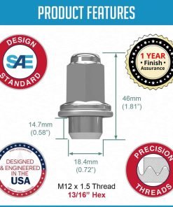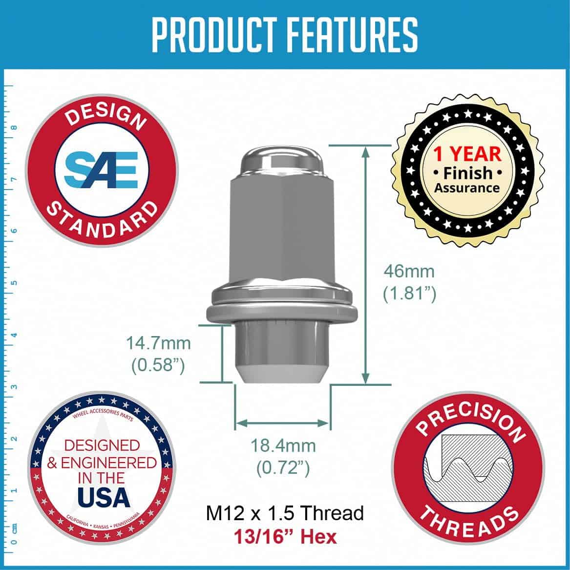 3. Diseñado en EE. UU.: diseño sólido de una sola pieza que reemplaza el diseño original de dos piezas para una mayor fiabilidad. A diferencia de las tuercas de seguridad con tapa de acero, nuestro diseño de una sola pieza no se hincha ni se deslaminan después de la exposición a la humedad. Dándole tranquilidad. Cumple o supera los estándares de fábrica OEM.