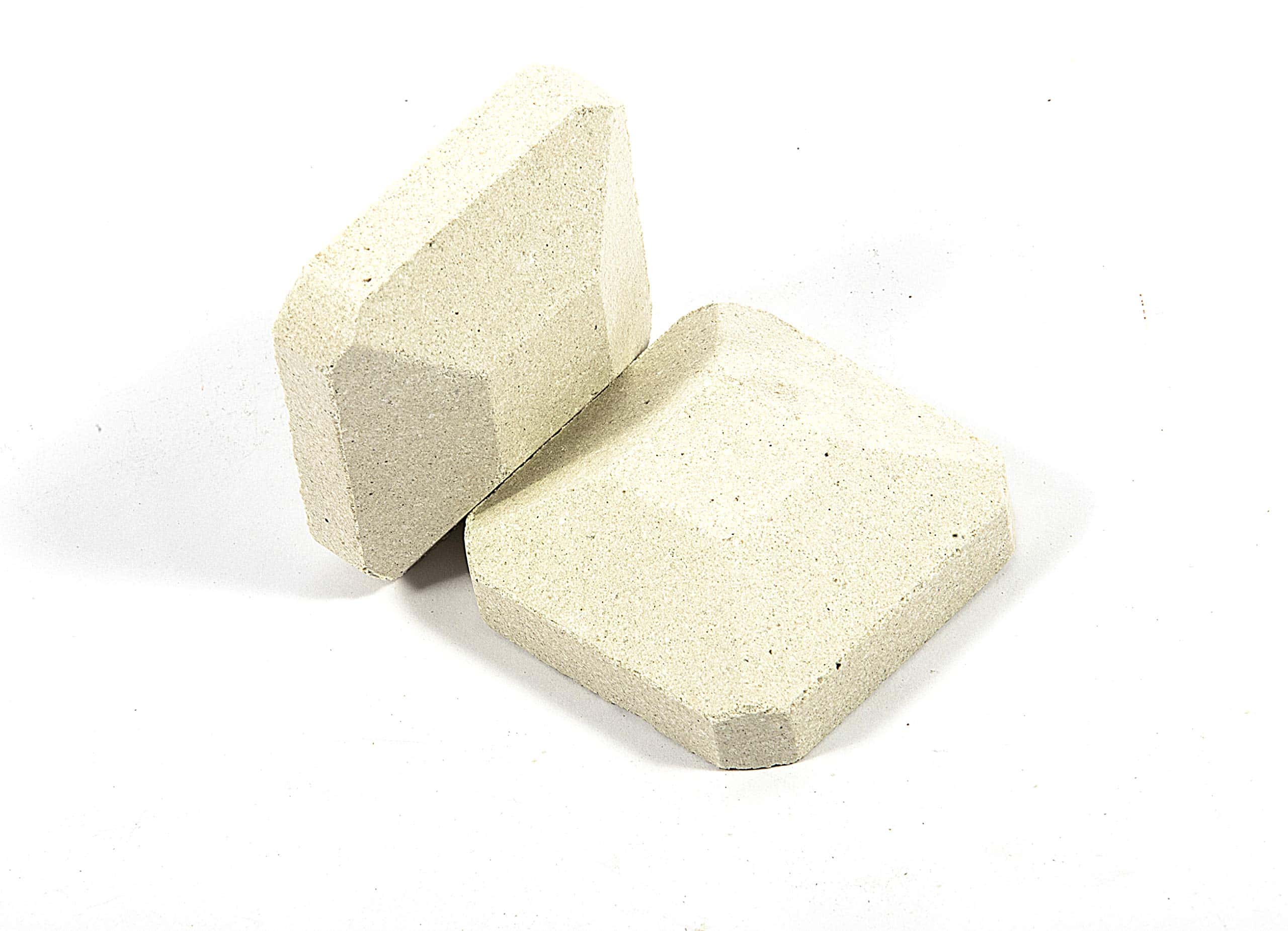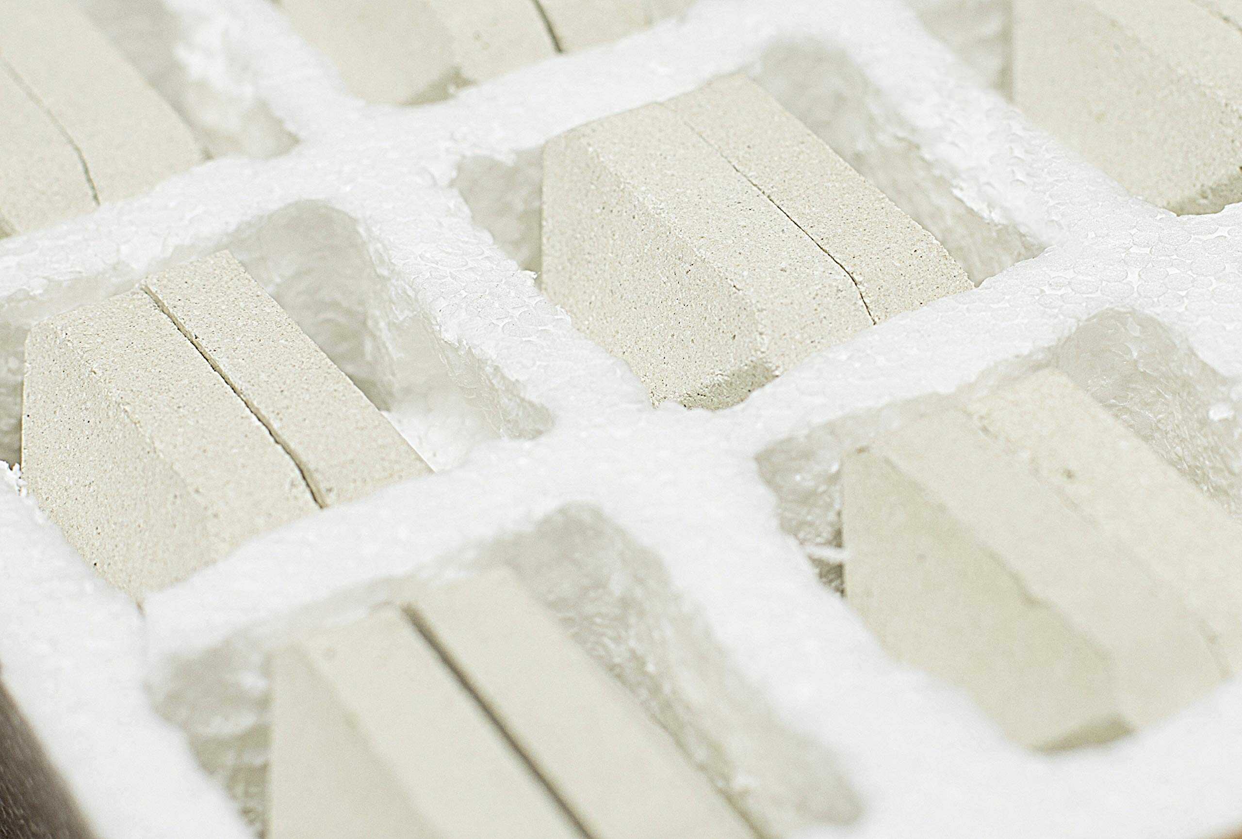 3. Cada briqueta mide 2 x 2 x 0.7 pulgadas.