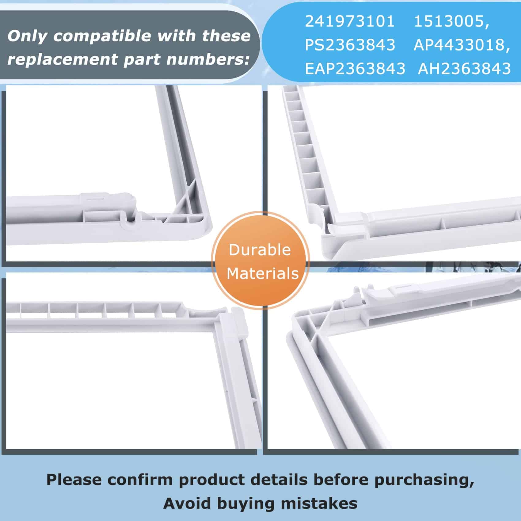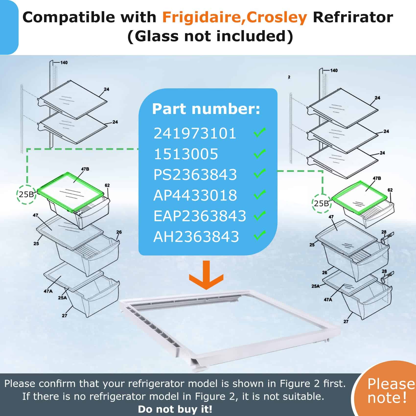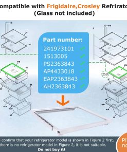 La cubierta del cajón del refrigerador 241973101 es un repuesto confiable y de alta calidad para refrigeradores Frigidaire y Crosley. Está fabricado con materiales seguros y confiables y cumple con los estándares OEM. El número de parte de reemplazo es 1513005, AH2363843, EA2363843, PS2363843 y AP4433018, lo que garantiza una compra precisa a través del número de parte y el tamaño del marco. Compatible con varios modelos de refrigeradores Frigidaire y Crosley, como DGHX2355TF0, DGHX2355TF4, DGHX2355TF5, FFHX2325TE0, FFHX2325TE2, CRSE233TB0, CRSE233TS0, CRSE233TW0, entre otros. Tenga en cuenta que la cubierta del cajón para verduras 241973101 no incluye vidrio, que se puede pedir por separado con el número de parte 241992909. En caso de daños en el producto durante el transporte u otros factores, estamos comprometidos a resolver los problemas para garantizar la satisfacción del cliente. ¡Contáctenos si tiene alguna pregunta y le brindaremos soluciones sinceras y satisfactorias!