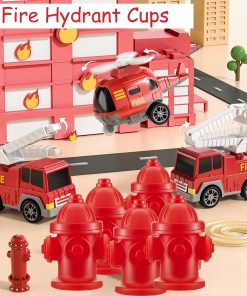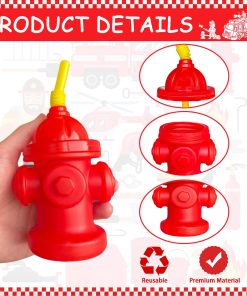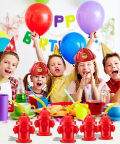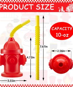 24Pcs Vasos con Pajita de Hidrante de Bomberos con Tapas