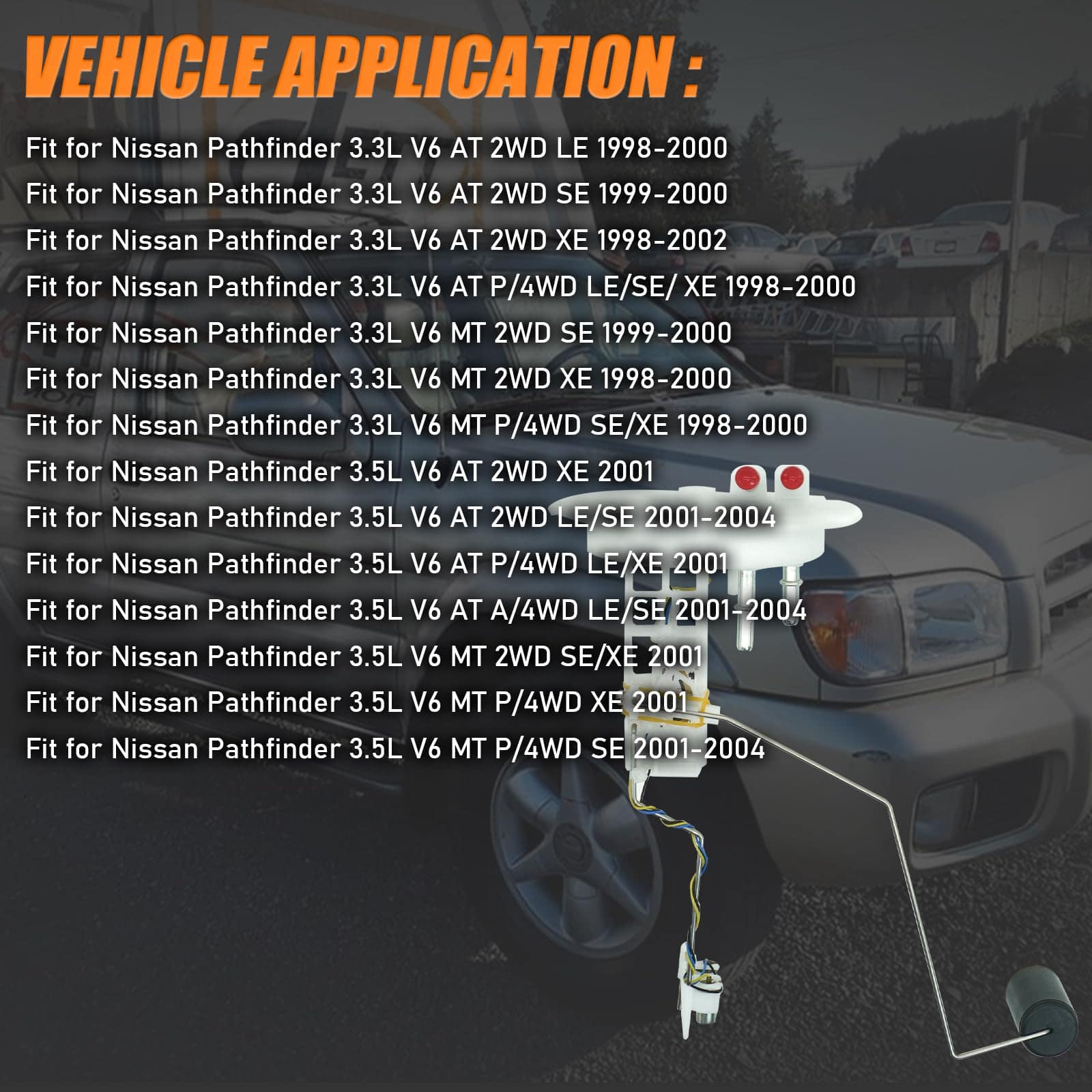 2. Modelos Compatibles: El sensor de nivel de la bomba de combustible se ajusta a Nissan Pathfinder 1998 1999 2000 2001 2002 2003 2004 3.3L 3.5L V6.