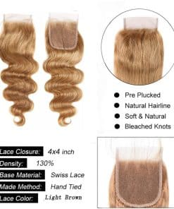 Detalles del Cierre de Encaje Rubia 4×4 HD Transparente N.º 27