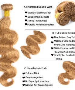 Color de Bundles Cabello Humano: 27 Honey Blonde Bundles Onda Cuerpo, Se Puede Alisar, Permanente, Rizar, Teñir y Decolorar.