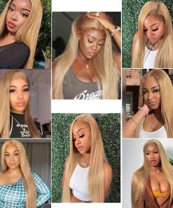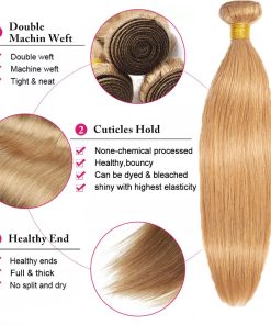 Color de Mechones de Cabello: Mechones de Cabello Liso Rubio Miel #27, Puede Alisarse, Permanente, Rizado, Teñido y Decolorado.
