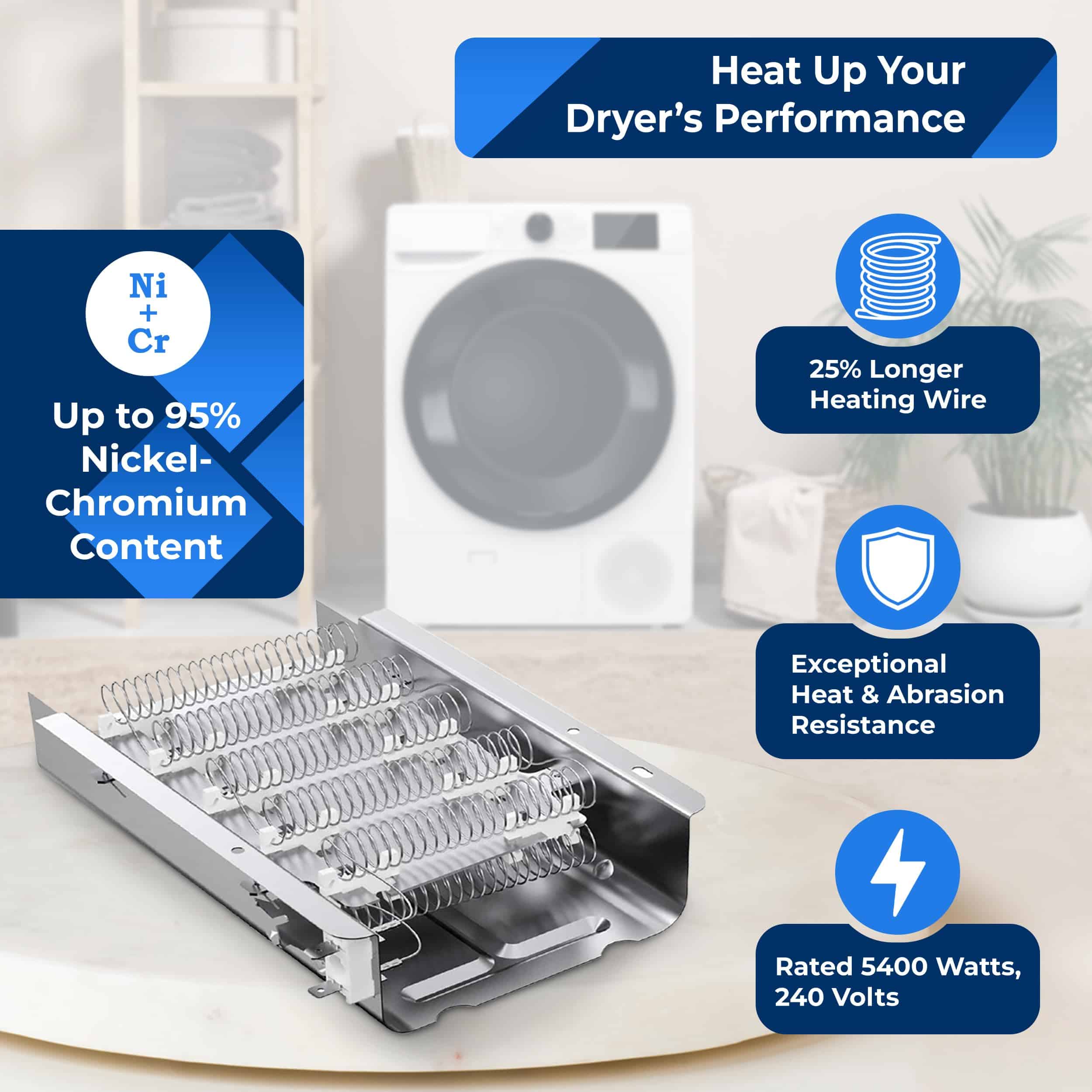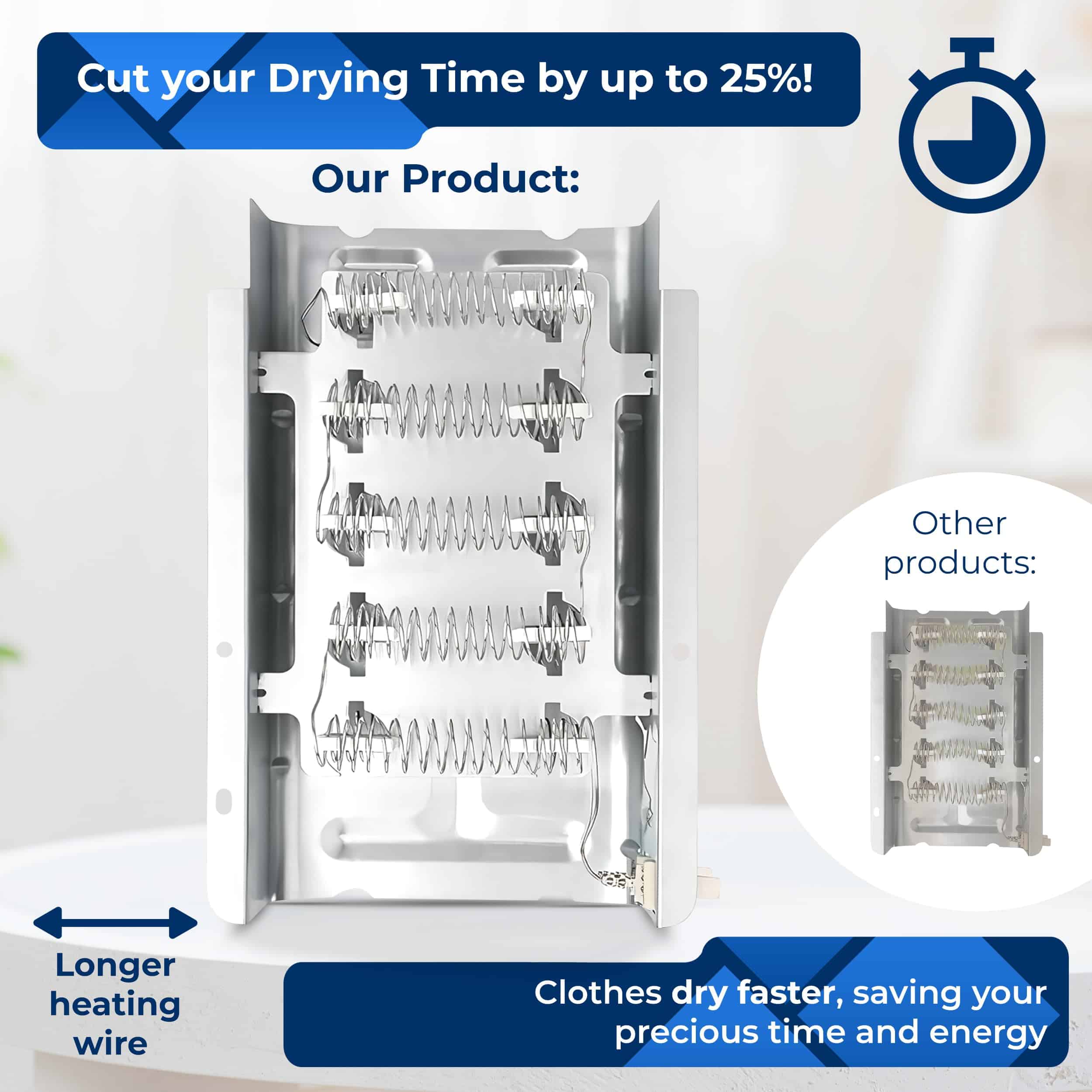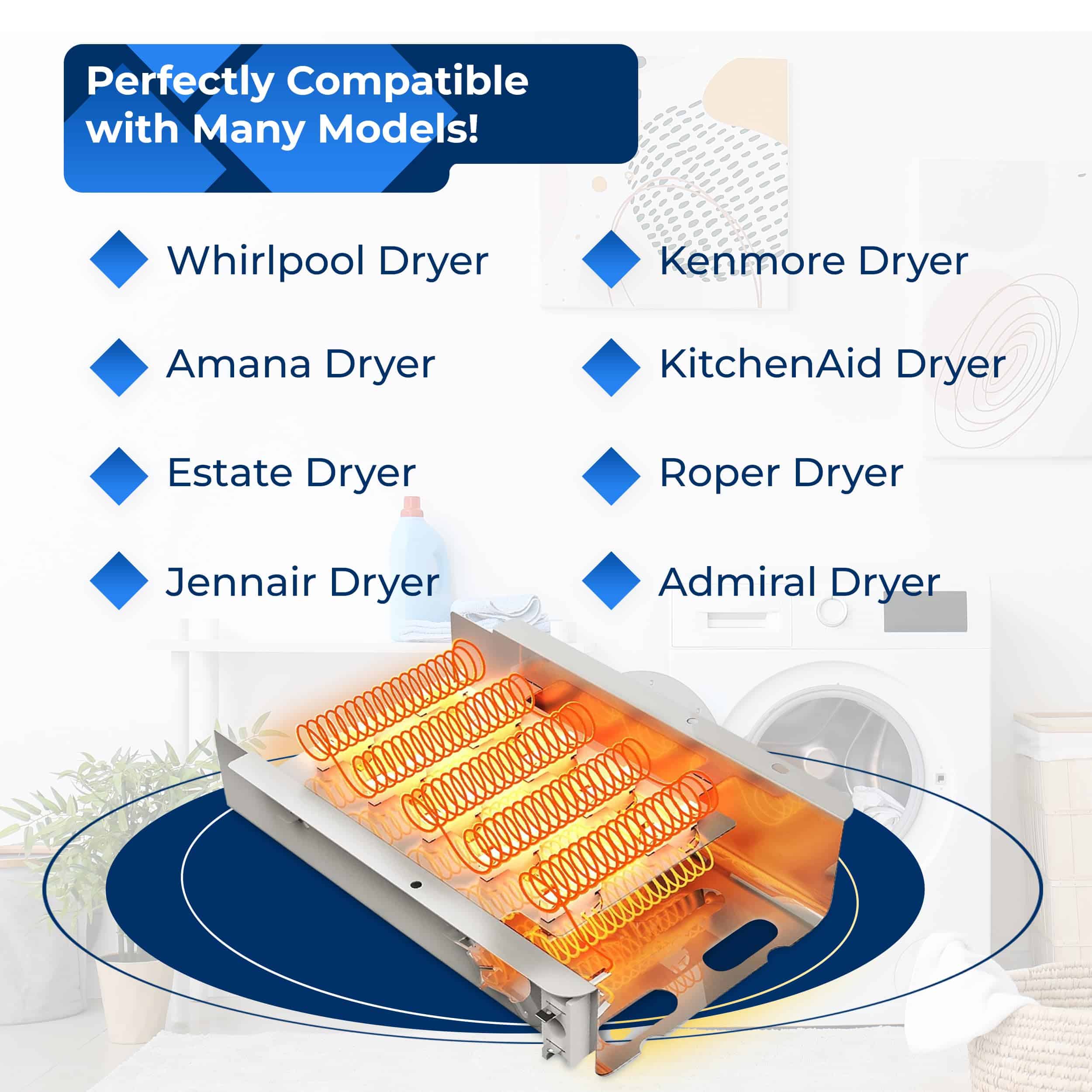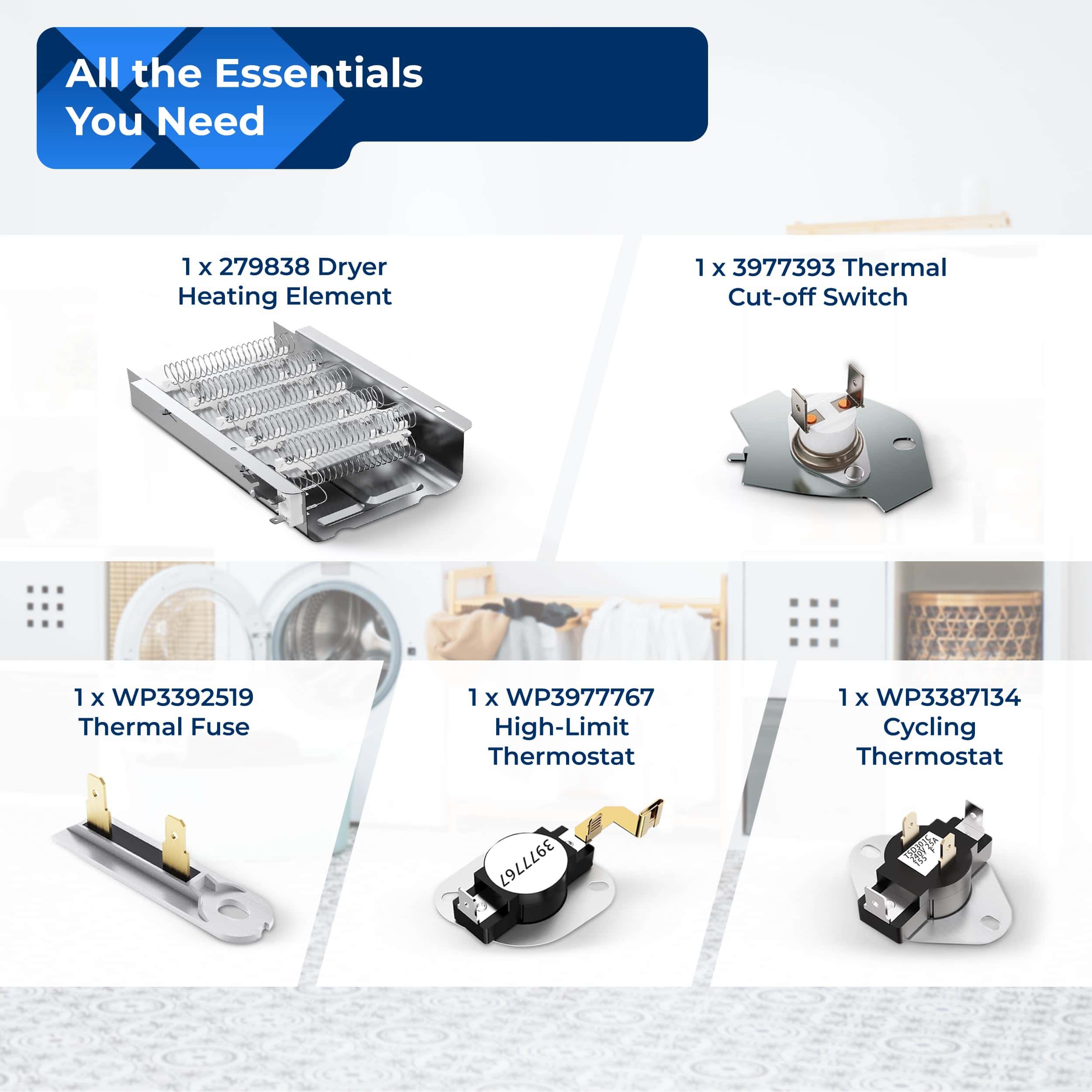 El elemento calefactor 279838 para secadora se ha diseñado para secadoras Kenmore, incluidas las series 70, 80, 90, 300, 400, 500, 600 y modelos 110. Compatible con diversos modelos de las principales marcas como Whirlpool, Amana, Maytag, Roper, Admiral y Estate. Este kit incluye elementos esenciales como el termostato, fusible térmico y jumper wire, lo que garantiza un servicio fiable y eficiente. Si tiene alguna pregunta o necesita asistencia, no dude en consultarnos.