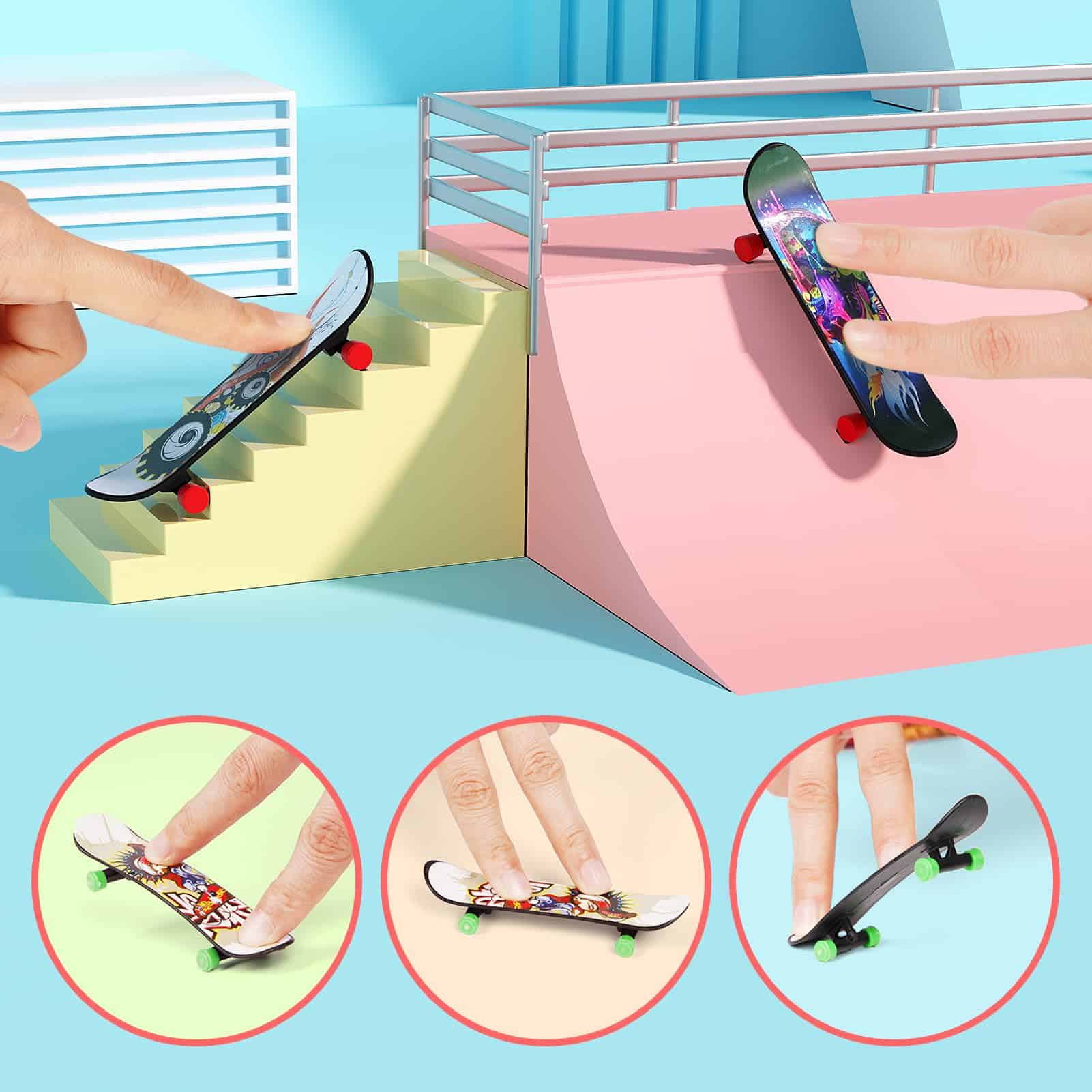 5. Más aplicaciones: Entrenamiento de habilidades en patineta, perfecto para practicar / dominar trucos de fingerboard y ejercitar la coordinación de los dedos mientras disfrutan de los excelentes fingerboards.