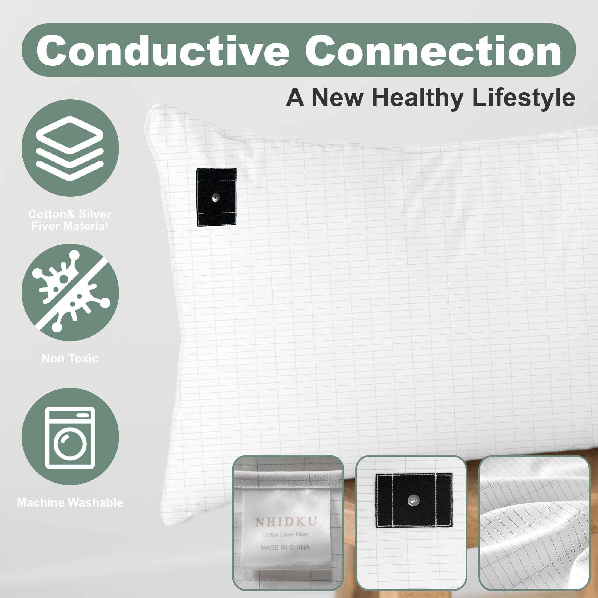 2. Conexión a Tierra–La razón por la que la funda de almohada para conexión a tierra puede lograr el efecto de conexión a tierra es que su tela contiene un cierto grado de fibra de plata para garantizar su conductividad. Su piel puede estar en contacto directo con estas fundas de almohada conductora sin causar daño y en cambio promoviendo la conexión a tierra.