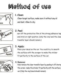 100% Nuevo y de Alta Calidad. Color opcional. Diseños de calidad para líneas suaves. Diseño único: Se ajusta a tu automóvil. Resalta la belleza del cuerpo del automóvil. Fácil de limpiar. Las calcomanías para automóvil duraderas resistirán la prueba del tiempo. Son duraderas cuando se aplican a autos, barcos y ventanas, ya que están cortadas en vinilo exterior de alta calidad. Resistentes a la decoloración con protección UV para garantizar colores vibrantes duraderos. Fácil de instalar. Limpia la superficie objetivo, asegúrate de que esté libre de aceite y polvo. Quita la película protectora de las cintas adhesivas fuertes y colócala en la posición correcta. Puedes alisar la superficie con la espátula para que la calcomanía se ajuste perfectamente a la superficie del automóvil.