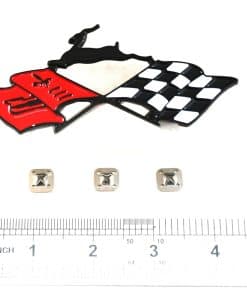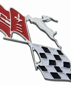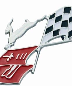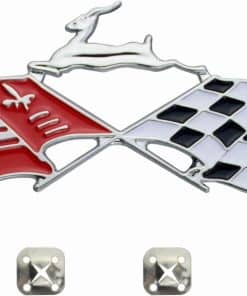 Emblema metálico de 2 piezas que representa la insignia Impala SS con la bandera cruzada en la parte trasera. Diseñado como reemplazo para los modelos de Chevrolet Chevy Impala fabricados entre 1961 y 1962, con el número de parte 3780964. Este emblema tiene un ancho aproximado de 4.5 pulgadas y está hecho con metal de alta calidad que garantiza durabilidad y resistencia al agua. Añade un toque de estilo y elegancia a tu vehículo con este accesorio auténtico y de calidad.