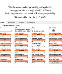 El firmware se puede actualizar configurando los parámetros del ESC a través del software BLHeli-32, se pueden configurar hasta veinte parámetros con una fuerte adaptabilidad