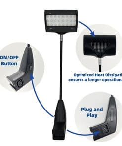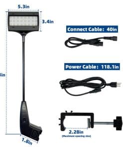 2pcs Luces de Exhibición Negras Displayfactory Conectables LED para Ferias Comerciales Incluyen Abrazadera de Montaje C, Soportes, Cables de Alimentación y Conexión. Alta luminancia: Iluminación suave para ferias comerciales y alto índice de reproducción cromática, luminiscencia uniforme, con colores y temperaturas de color opcionales. Uso amplio: Imitación del diseño de luz halógena tradicional, con una amplia gama de aplicaciones. El espectro no contiene rayos infrarrojos ni ultravioleta, y no hay radiación. Ángulo ajustable de la iluminación de exhibición para ferias comerciales: Soporte ajustable – Izquierda y derecha: rotación de 360 grados, arriba y abajo: aproximadamente 60 grados de ajuste, brindando una cobertura lumínica más amplia. El área de iluminación se puede cambiar en cualquier momento. Plug & Play: Las luces de brazo se pueden conectar entre sí, se conectan directamente a la corriente y se presiona el botón de encendido en la base para encender la luz; El cable de alime… (truncated)