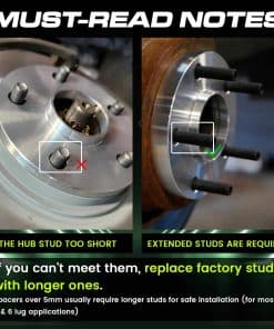 Nuestros separadores de rueda/adaptadores están diseñados para la corrección de offset, mejorando el rendimiento en el manejo y realzando la apariencia general del vehículo. Fabricados con aluminio de alta calidad 6061 T-6, conocido por su resistencia y durabilidad. Los separadores Customadeonly se producen mediante un proceso CNC automatizado en nuestro centro de mecanizado de 4 ejes, lo que garantiza calidad y precisión consistentes en cada producto. Respaldados por nuestra garantía de producto de 3 AÑOS contra cualquier defecto funcional. Es necesario instalar pernos extendidos (no incluidos) para una instalación segura del producto.