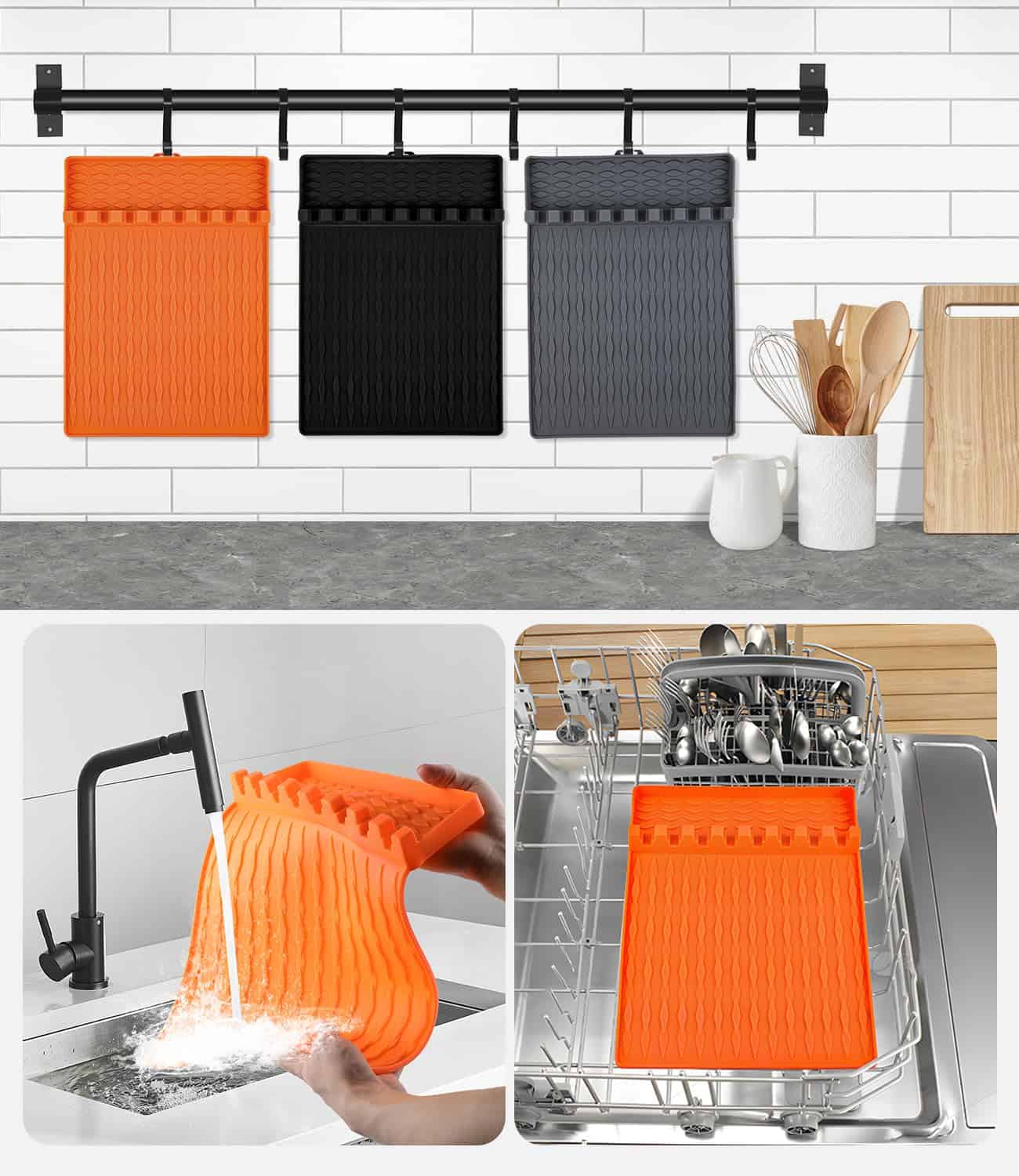 2PCS Tapete de Silicona para Utensilios -Naranja