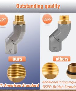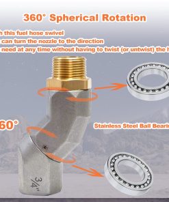 4. NPT El giro de combustible es NPT (Estándar Americano) y es tan fácil de instalar que puedes instalarlo para satisfacer los productos macho y hembra de 3/4 de pulgada. Donde necesites marcar una manguera o asegurarte de que no se enrolle, solo agrega uno de estos giros y no tendrás que luchar más con la manguera.