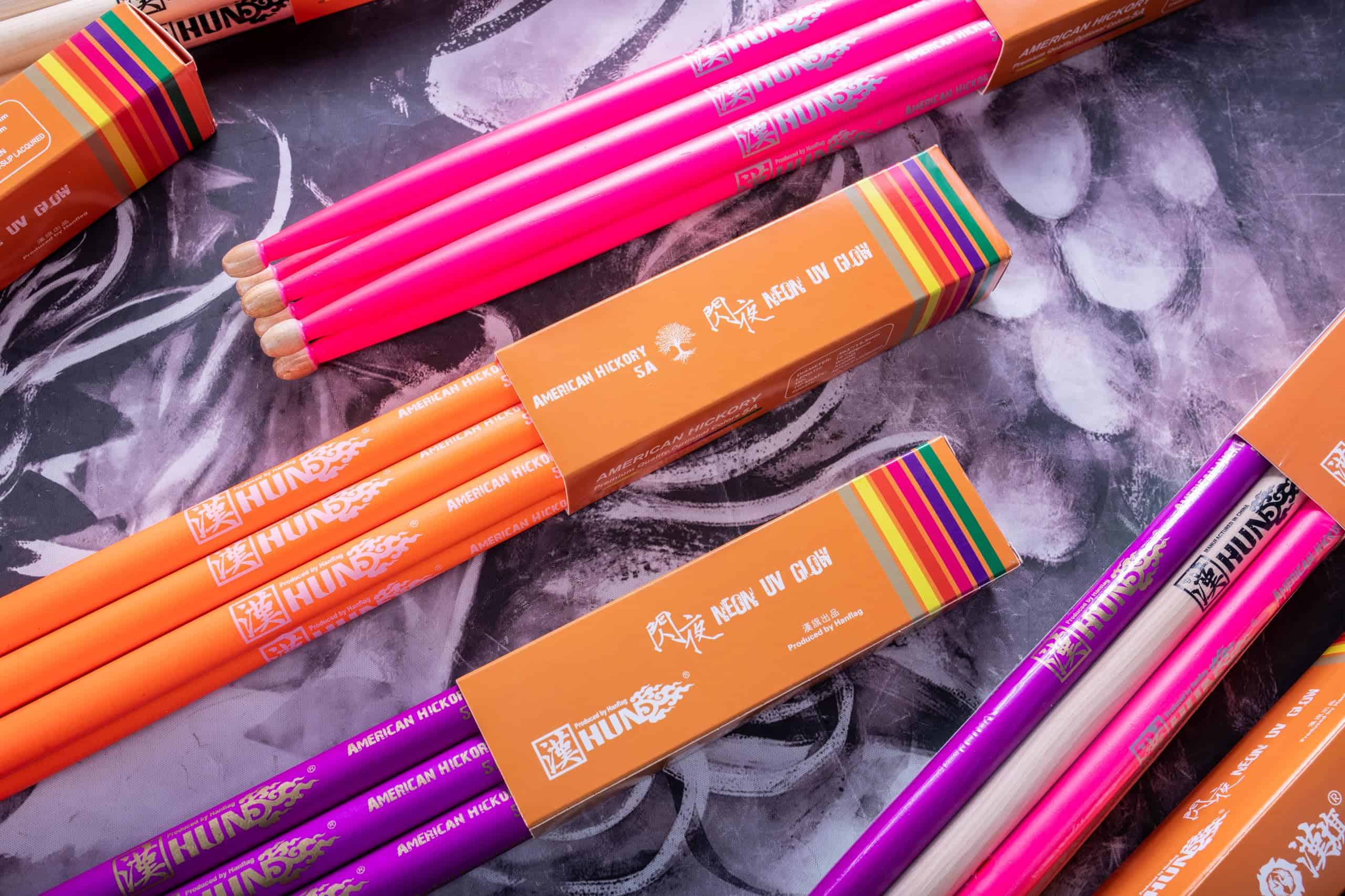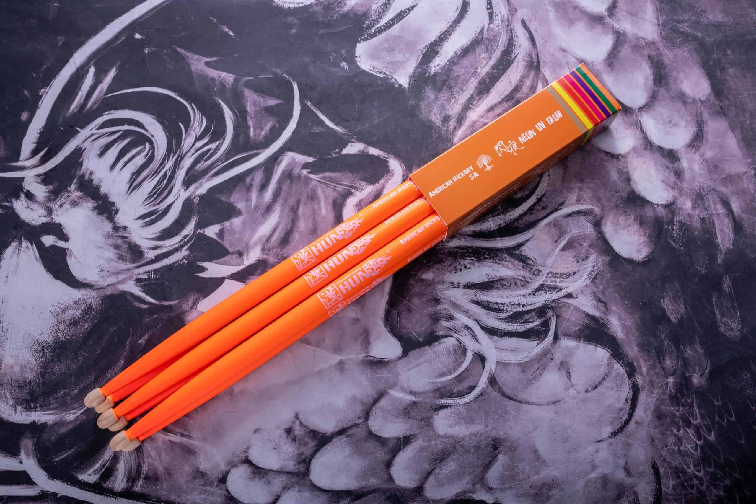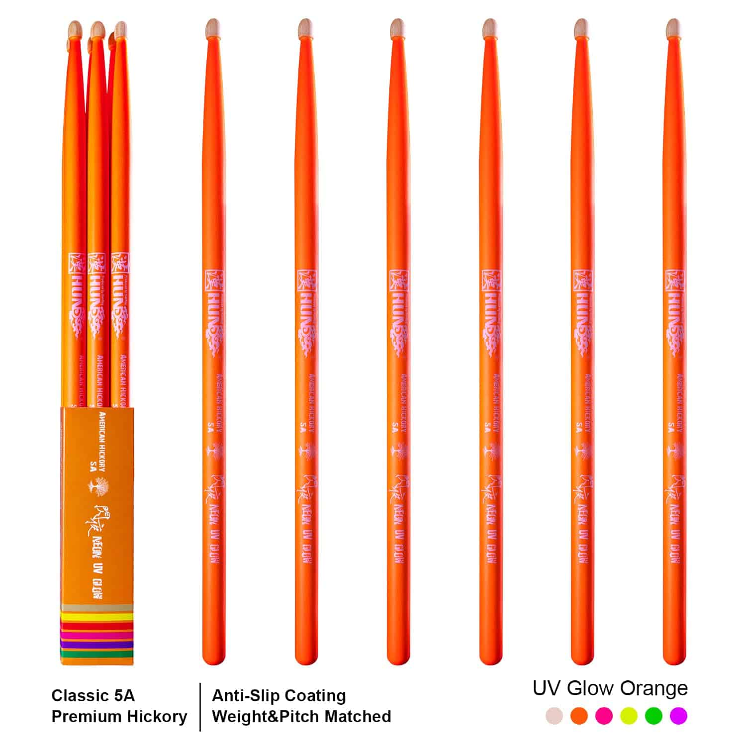 3 pares (naranja) – Baquetas de batería de neón UV Glow