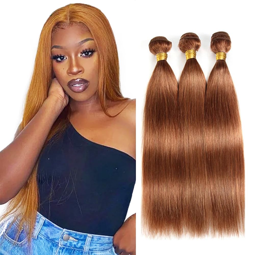 #30 Brown Human Hair Bundles Straight Bundles 20 22 24 Inch