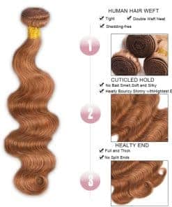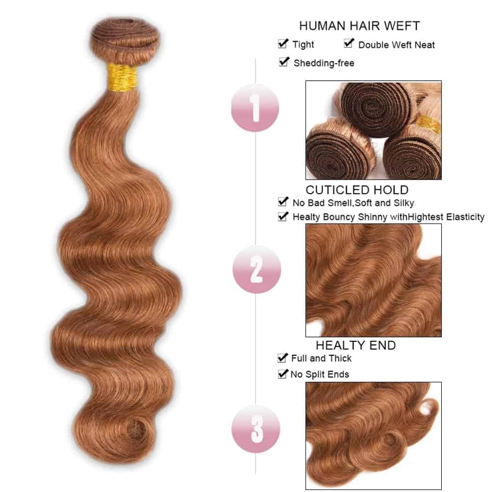 Color de Bundles de Pelo Humano: Bundles de Pelo Ondulado Café Claro #30, Pueden ser alisados, permanente, rizados, teñidos y blanqueados.