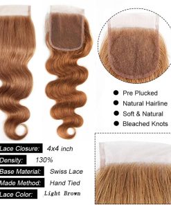 Detalles del Cierre de Encaje 4×4 Transparente HD Color Marrón #30