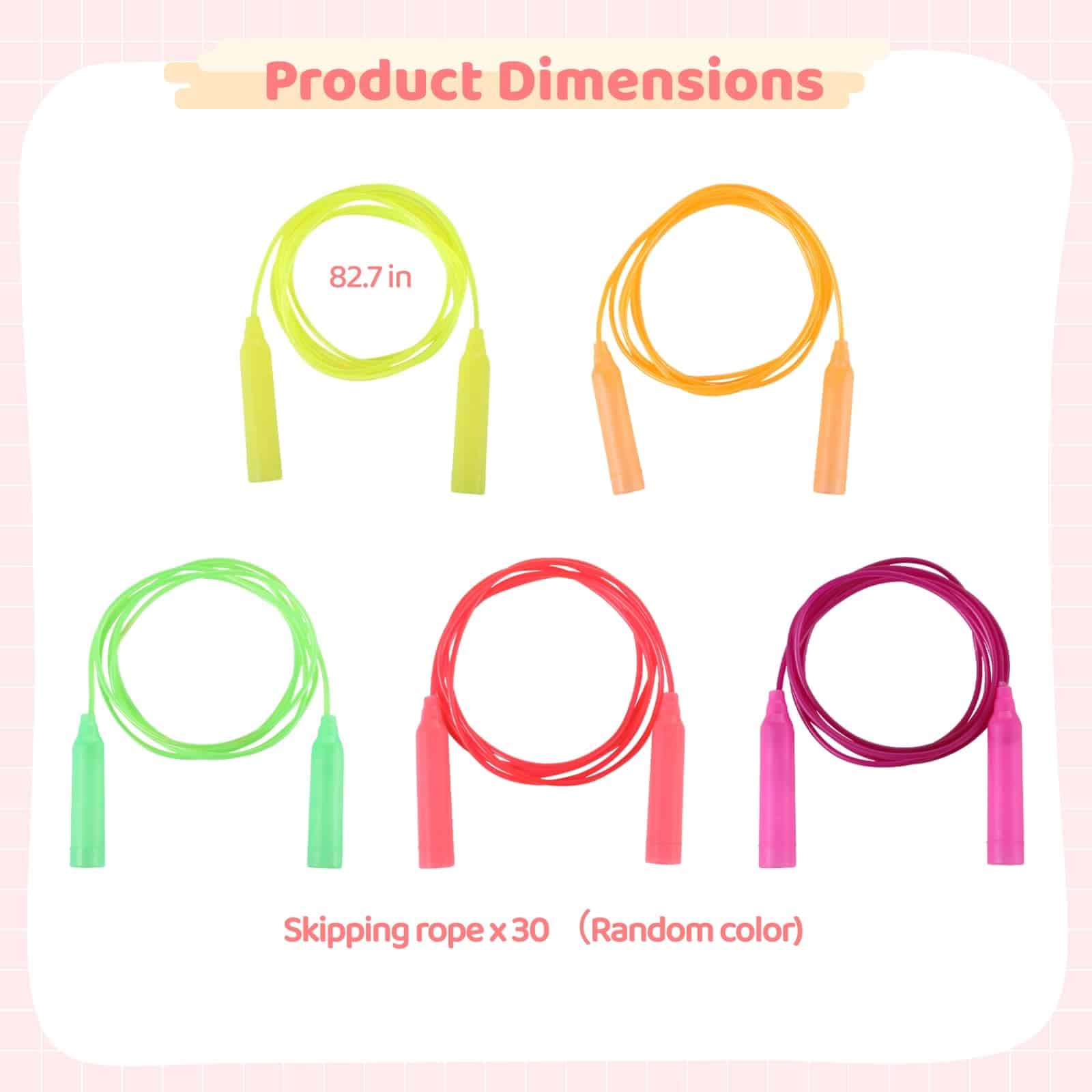 3. Compartir regalos: Recibirás 30 piezas de cuerdas de saltar en varios colores, con colores brillantes y apariencia de moda; pueden ser regaladas a estudiantes y niños que te rodean.