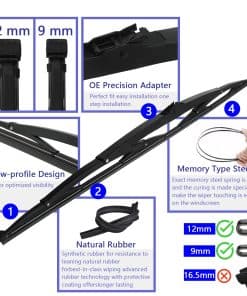 32 Cuchillas Limpiaparabrisas para Rv o Autocaravana Limpiaparabrisas de rv 12mm 9mm Gancho en J con 1 herramienta de repatrón de goma recortadora restauradora Y 2 cuchillas limpiaparabrisas Y 2 recargas de goma 32″/32″