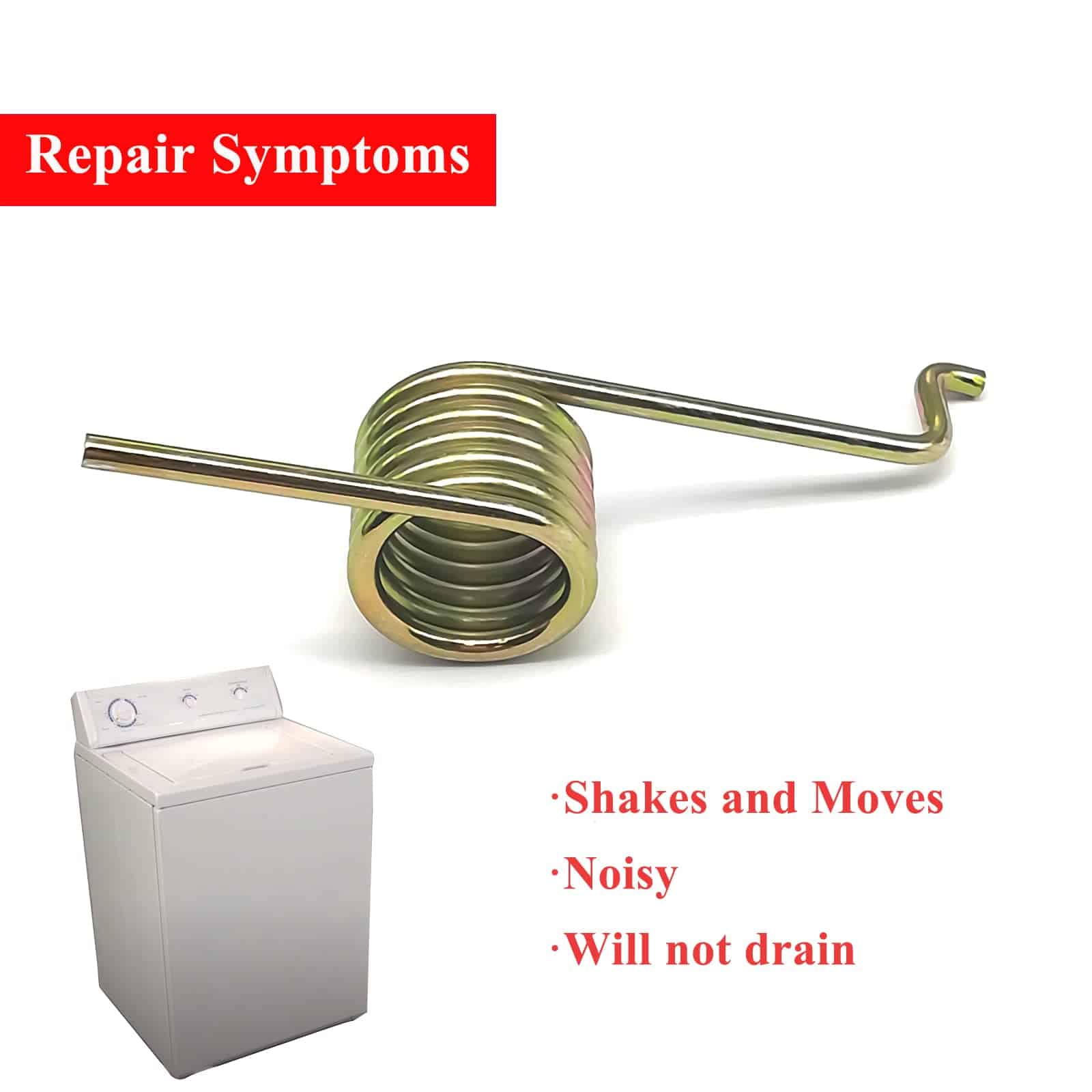 Resorte de la polea de la correa de la lavadora 3204425 Para Lavadoras Frigidaire Electrolux Gibson Reemplaza PS446551 AH446551 EA446551 AP2131606 Detalles del Producto: Número de modelo: Resorte de la polea de la correa de la lavadora 3204425, trabaja en conjunto con la polea de la correa. Número de parte de reemplazo: 3204425 reemplaza AP2131606, EA446551, AH446551, 399, PS446551. El reemplazo del resorte de la polea es aplicable a las siguientes marcas: Frigidaire, Westinghouse, Kenmore, Universal, Gibson, Kelvinator, Tappan, Crosley, Electrolux, Montgomery Ward. Modelos Compatibles: 46-2751-23-01 , 46-2810-00-01 , 46-2810-23-01 , 46-2810-66-02 , 46-2830-00-01 , AW100KD1 , AW100KD2 , AW100KW1 , AW100KW2 , AW200G1W , AW200G2W ,etc. La razón más común de reemplazar el resorte de la polea es si la lavadora no está centrifugando o agitando, la correa de transmisión está suelta, y la polea de la correa también está floja. Incluye: 1 x Resorte de la polea de la correa de la lavadora 3204425 Por favor tenga en cuenta: 1. Este resorte de la polea de la correa de la lavadora no es una parte original, la mención de nombres de marca y cualquier designación de modelo relacionada anteriormente es solo para demostrar la compatibilidad. 2. Por favor use guantes de trabajo para proteger sus manos.